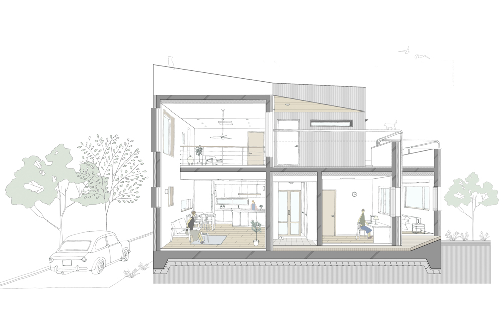 The programs of the interior space were planned so that most aspects of their lives could take place on the first floor, considering the residential environment of the elderly couple. The second floor was planned as a small and cozy space with a guest room and a small living room. On the first floor, there is a utility room with spacious storage as well as a supplementary kitchen, and the study for the husband faces the garden along with the bedroom with a bathroom and dressing room.