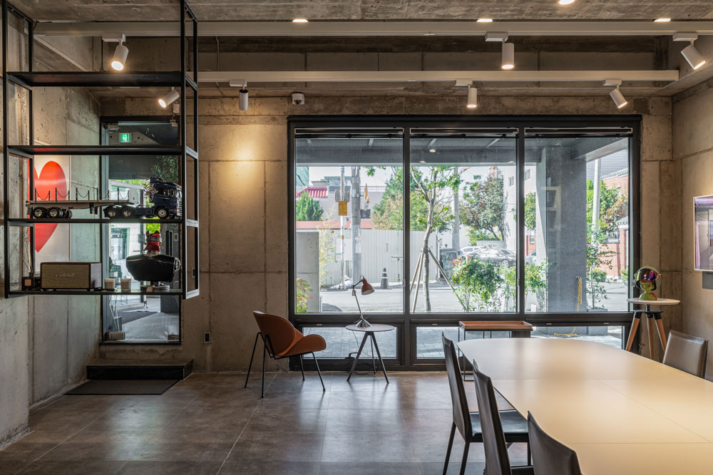 1-2층과 2-4층을 연결하는 계단을 구분하여 프로그램 상의 구분을 더욱 분명히하고, 2층은 CEO의 업무공간과 회의실, 3층은 직원들의 업무공간, 4층은 웰컴플레이스 성격의 다목적 공간과 외부 테라스로 구성한 것 역시, 전체적 규모와 잠재적 고객의 편의성을 두루 고려한 결과다.