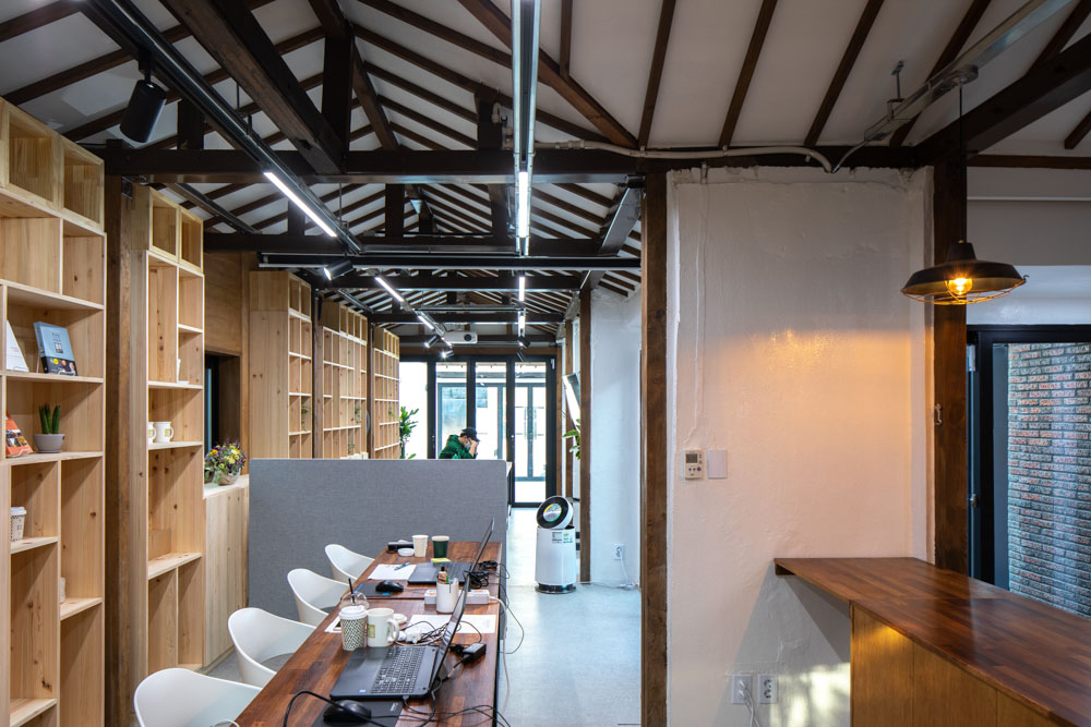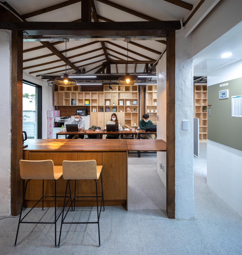 기존 건물은 1960년에 시멘트 블록으로 지어진 단층의 단독주택인데, 마당 부분을 점포로 활용하기 위해 지붕이 덧붙여져 있었다. 건축가는 내부의 칸막이 벽을 철거하여 청년공간으로 리모델링했다. 지붕은 일본식 중목구조로 틀이 형성되어 있어 그 뼈대를 드러내기 위한 작업이 공사의 중요한 부분이었다.