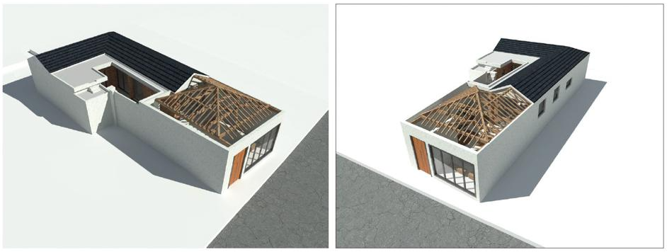 마당의 지붕 철거 후, 드러난 60년 된 목재 틀은 재사용이 불가능할 정도로 훼손돼 있었다. 건축가는 형태를 유지하면서 목재를 더하여 뼈대로 새롭게 형성했다. 이렇게 방으로 나뉘던 내부 공간은 벽체가 철거되면서 목재 기둥과 보가 보강되어 하나의 공간으로 구성된다. 기존에 사용되던 보일러와 바닥 난방은 유지되어 철거 범위가 최소화되고, 외부 벽체에 설치되어 있던 목재 창호는 같은 크기의 알루미늄 창호로 교체됐다. 적벽돌과 수성페인트로 구성된 외부 벽체는 그대로 유지됐다. 지붕으로 오르는 철제 계단도 기존의 구조물이 유지되며 난간으로 보강됐다. 기존 공간의 흔적을 남겨놓으면서도 새로운 청년들을 위한 공간으로 태어난 이 활력거점공간을 기대한다.