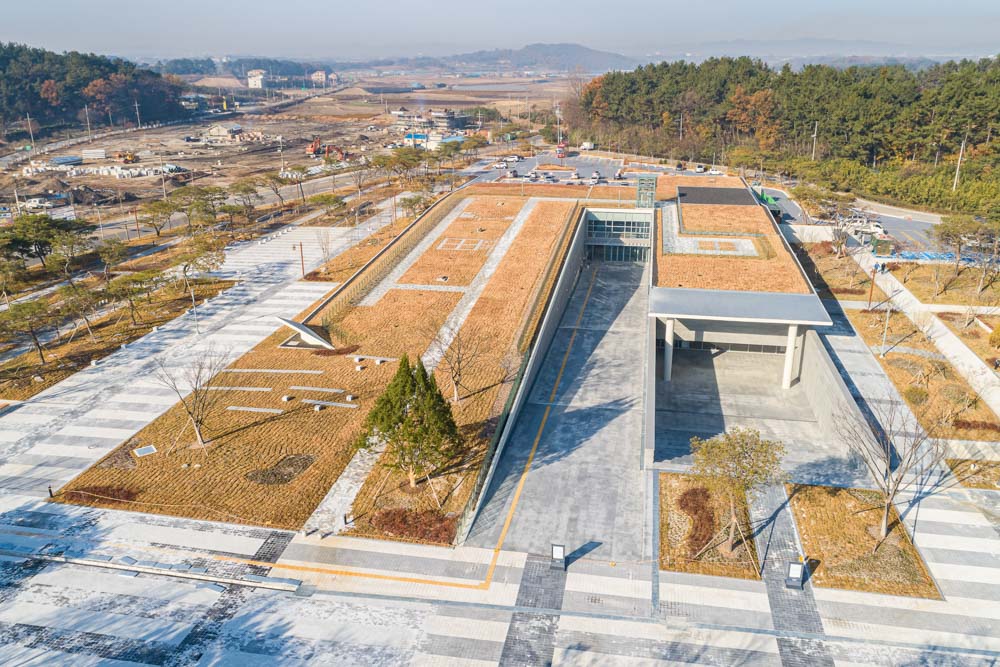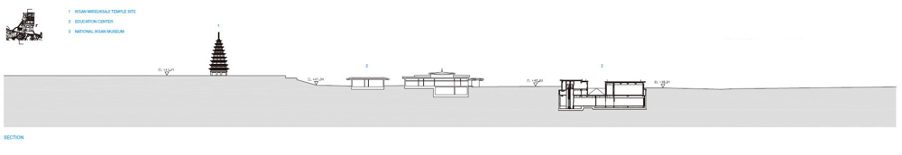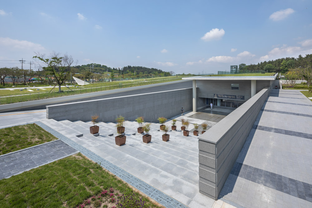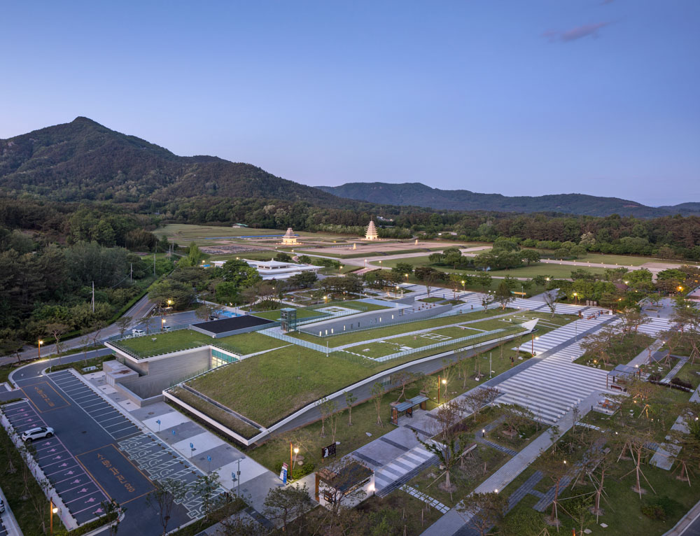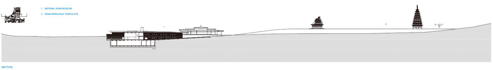 Iksan Mireuksaji, located on the plain between the left and right ridges of Yonghwasan Mountain, is a world cultural heritage built according to the Buddhist scriptures of the Baekje period, and only the site remains. The National Museum of Iksan, built next to this Mireuksaji site, maximizes the value of the Mireuksaji site by rediscovering the value of the site itself. The architect discovered traces of past history through extremely lowered and hidden spaces, realizing a space that enters into time, a space that meets the time of history, and a space where the lights of time overlap.