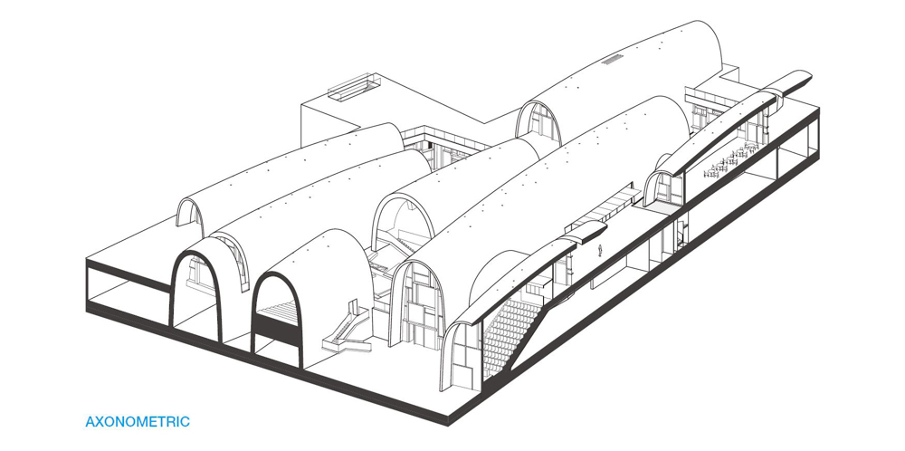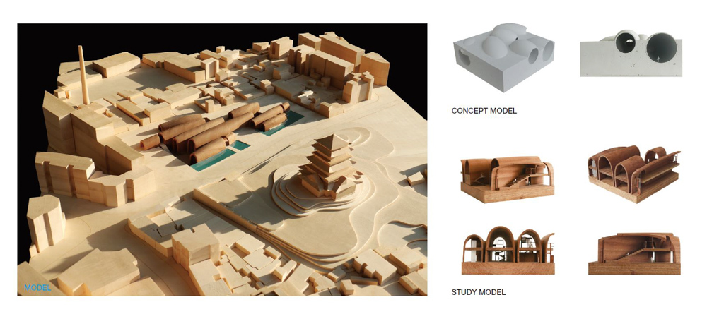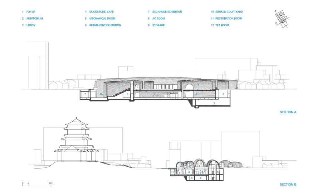The Imperial Kiln Museum comprises eight brick vaults, inspired by the shape of the traditional kiln. Each of the vaults is of different size, curvature, and length. The unparalleled and arched structures of the museum, like old kilns, reach below the level of the street to not only attain adaptability towards the complicated site but also create an intimate scale of interior space.