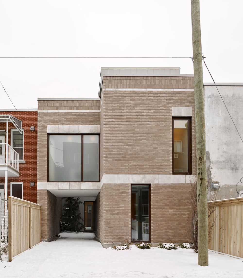 주택의 파사드는 완전히 현대적인 건축적 어휘로 계획되었지만 몬트리올의 세습적인 건축, 전통적인 측면 또한 연상시킨다. 파사드에서 돌출되어 서로 결합하는 수평의 석재 띠, 창문 위의 석재 인방, 주택 상부의 수직 벽돌 선은 모두 건물의 파사드 구성을 풍요롭게 한다. 밝은 색조의 베이지색과 회색을 단색으로 적용해 부드러운 촉감을 주기도 한다.