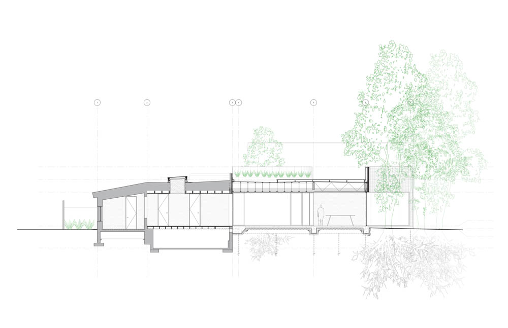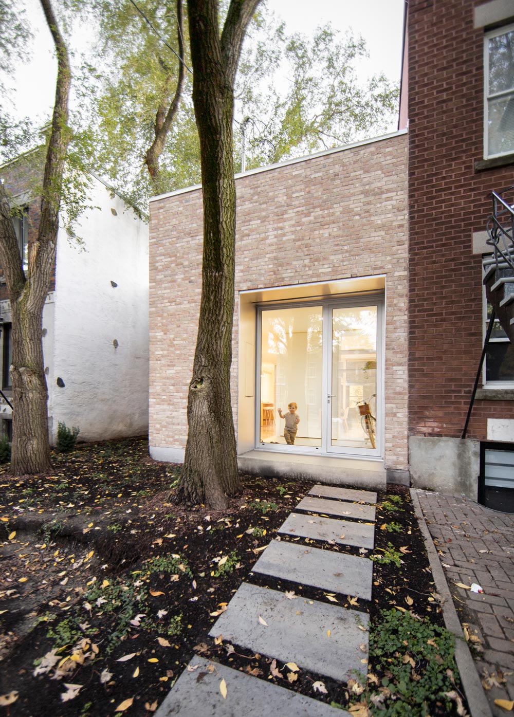 Located in the Rosemont-La Petite-Patrie borough of Montréal, deNormanville is part of the first wave of post-moratorium additions exploring new avenues for the transformation of the city’s disappearing one-story typology, commonly referred to as “shoeboxes”. By taking the preservation of the original structure and the site’s mature trees as its primary point of departure, the project responds in a straightforward but ultimately radical way to the principal challenges of designing an addition to the small, vernacular structure set at the rear of the lot. Delicately weaving across the site’s landscape, it reaches out to restore the continuity of neighbouring façades. While the old structure now finds itself preserved at the heart of the new home, the project reestablishes the presence of the one-story typology in the heterogenous family neighborhood dominated by Montreal’s renowned “missing middle” plex housing.