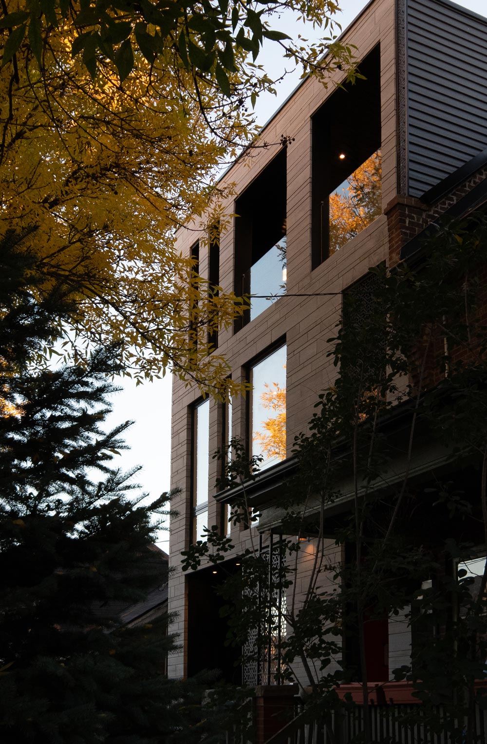 토론토의 블로워 웨스트 지역의 길고 좁은 부지 위에 있는 더 브라더스 레지던스는 3가구에게 3600평방피트의 생활공간을 제공한다.