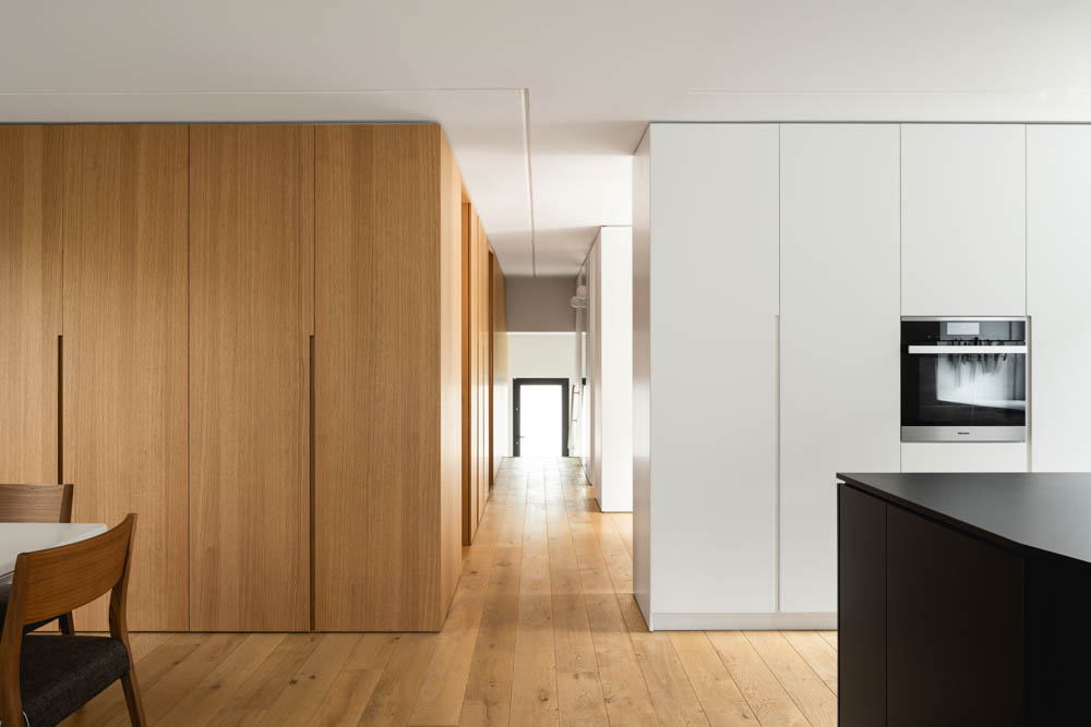 The architects first sought to reorganize the partitions to obtain fluid circulations and spaces that are well-proportioned, clean, and uncluttered.