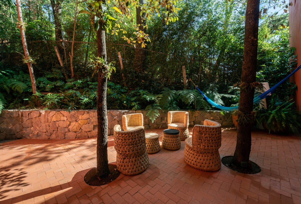 The dining room opens onto the terrace and the interior patio being ventilated and well lit. The interior patio is the place where the sun shines in the morning and one can go out for coffee and warm-up, or on the other side, take refuge from the sun of the west during the afternoon. It is a monastic place, without a view, but surrounded by vegetation, giving the tranquility and peace to rest in a hammock. Finally, the living room and dining room can be opened with sliding windows to integrate the terrace, as well as the backyard.