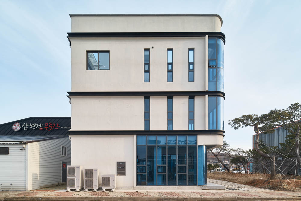 유일한 디자인 요소인 철골 프레임을 벽면에 맞게 정확하게 휘는 것도 영세한 현장에서는 마법이었다. 건축주의 삶의 이야기, 시공 전문가들의 끊임없는 하소연을 듣고 부단히 감리했지만 완성된 이 순간 남은 것은 결국 투박한 ‘필렛’이다. 투박함, 이것이 건축하는 사람의 삶이 아닌가 자위해본다. 그럼에도 건물은 이렇게 땅을 딛고 서 있다.