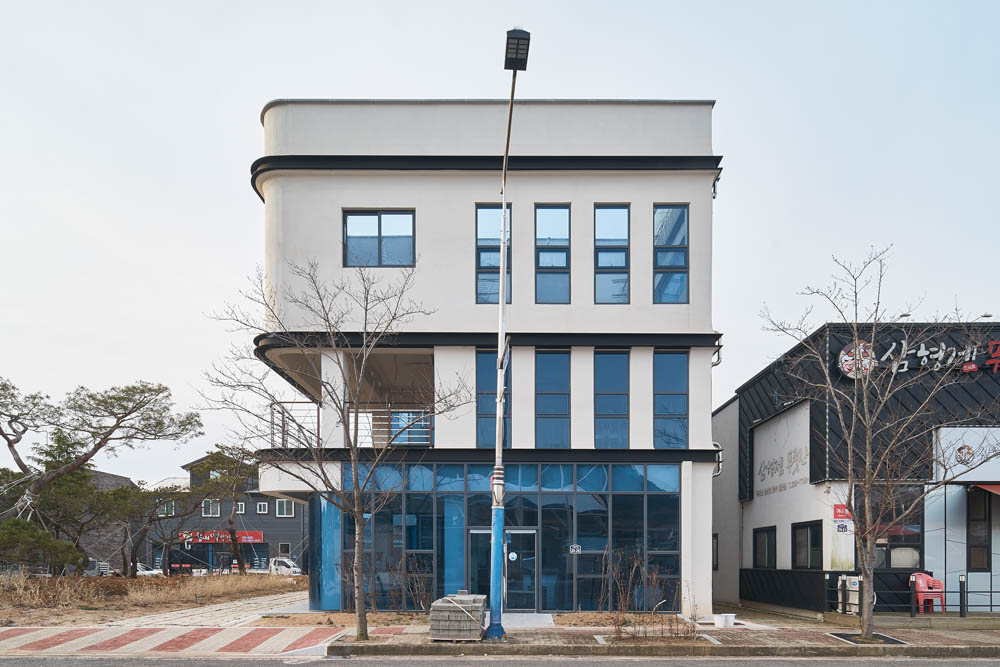 유일한 디자인 요소인 철골 프레임을 벽면에 맞게 정확하게 휘는 것도 영세한 현장에서는 마법이었다. 건축주의 삶의 이야기, 시공 전문가들의 끊임없는 하소연을 듣고 부단히 감리했지만 완성된 이 순간 남은 것은 결국 투박한 ‘필렛’이다. 투박함, 이것이 건축하는 사람의 삶이 아닌가 자위해본다. 그럼에도 건물은 이렇게 땅을 딛고 서 있다.