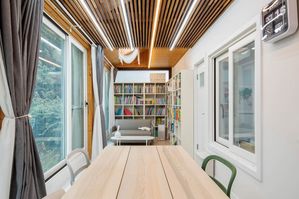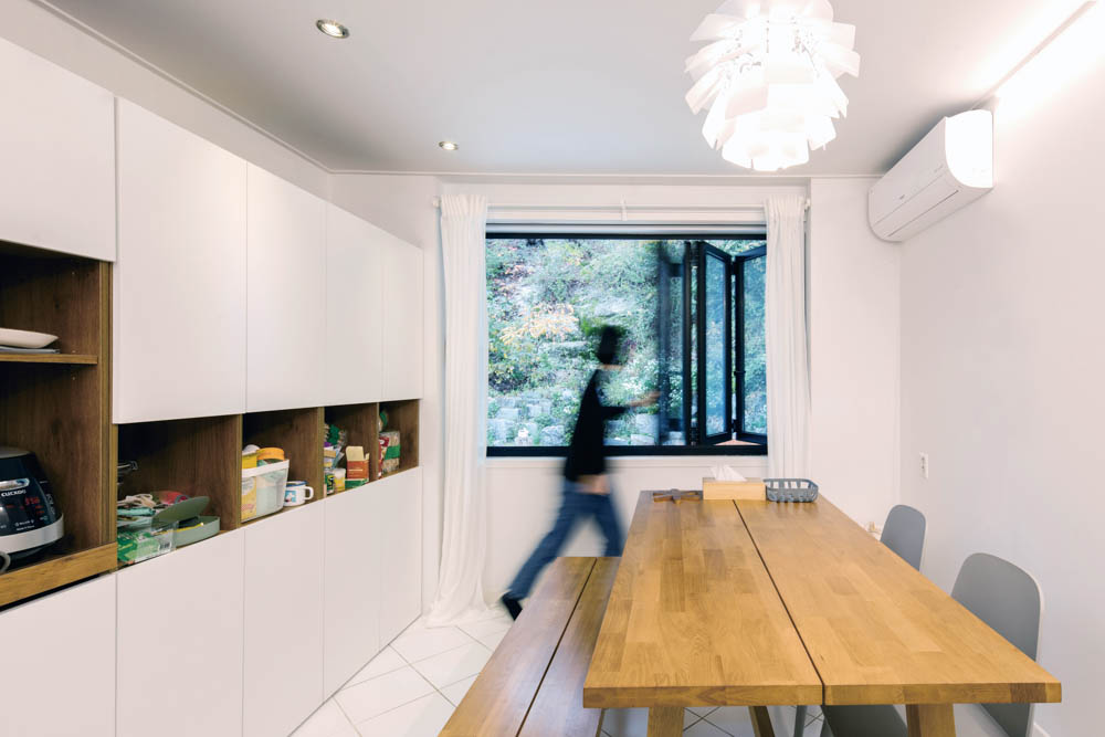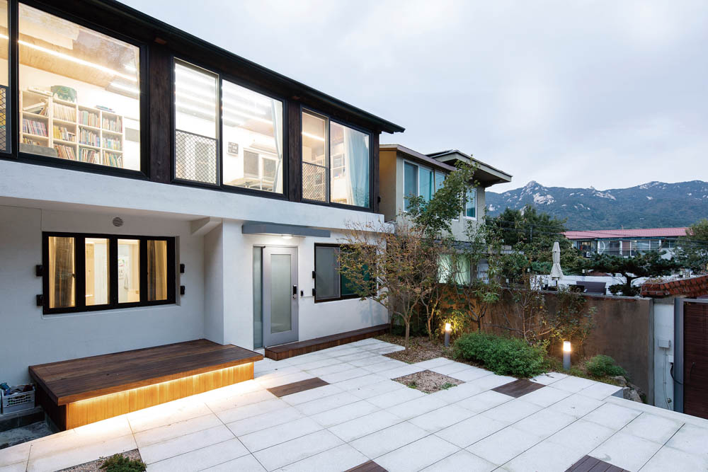 The site is located in the middle of a mountain in Gugi-dong, Jongno-gu. It is only when you go up to the place where large and small detached houses are concentrated until you are out of breath. The way to and from home is difficult, but it is in a position to have that much view. I fell in love with the mountain when I first met the old building, which is more than 30 years old. Mt. Bukak was seen far away, and a side of the yard seemed to be cutting down. Generally, the boundary of a house is divided into walls, where one side of the boundary was a mountain instead of a fence. The house itself was not splendid, but it was harmoniously and quietly mingled with the mountains. While remodeling, I hoped that it would be a house where I could preserve the existing house as much as possible and enjoy looking at the mountain quietly.