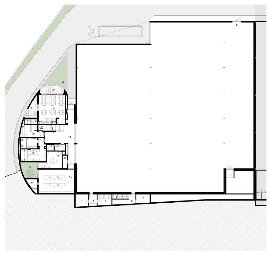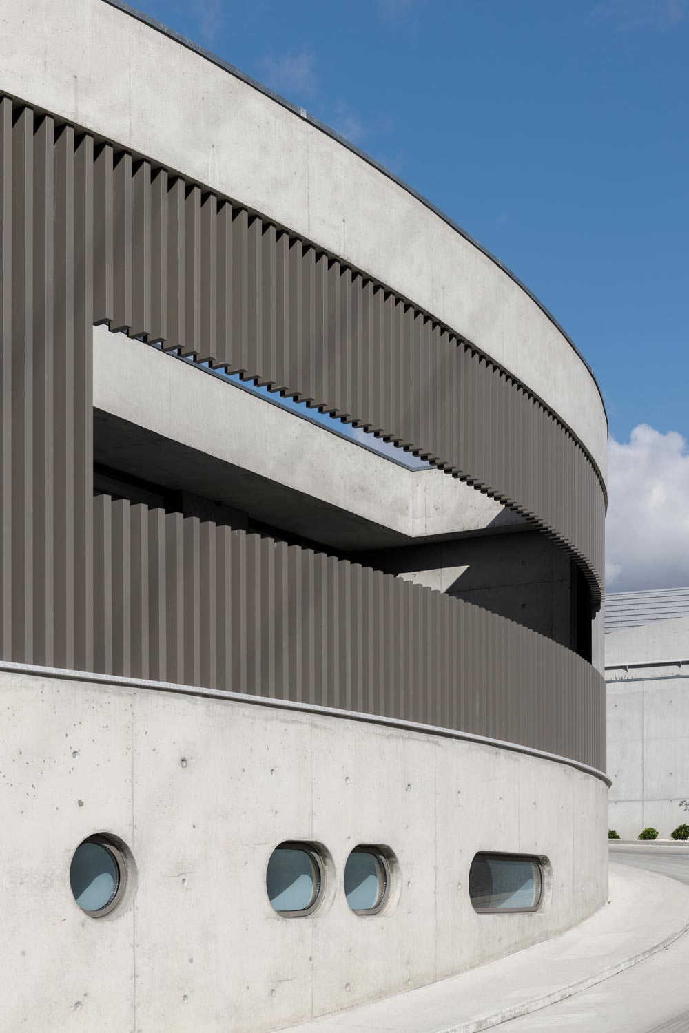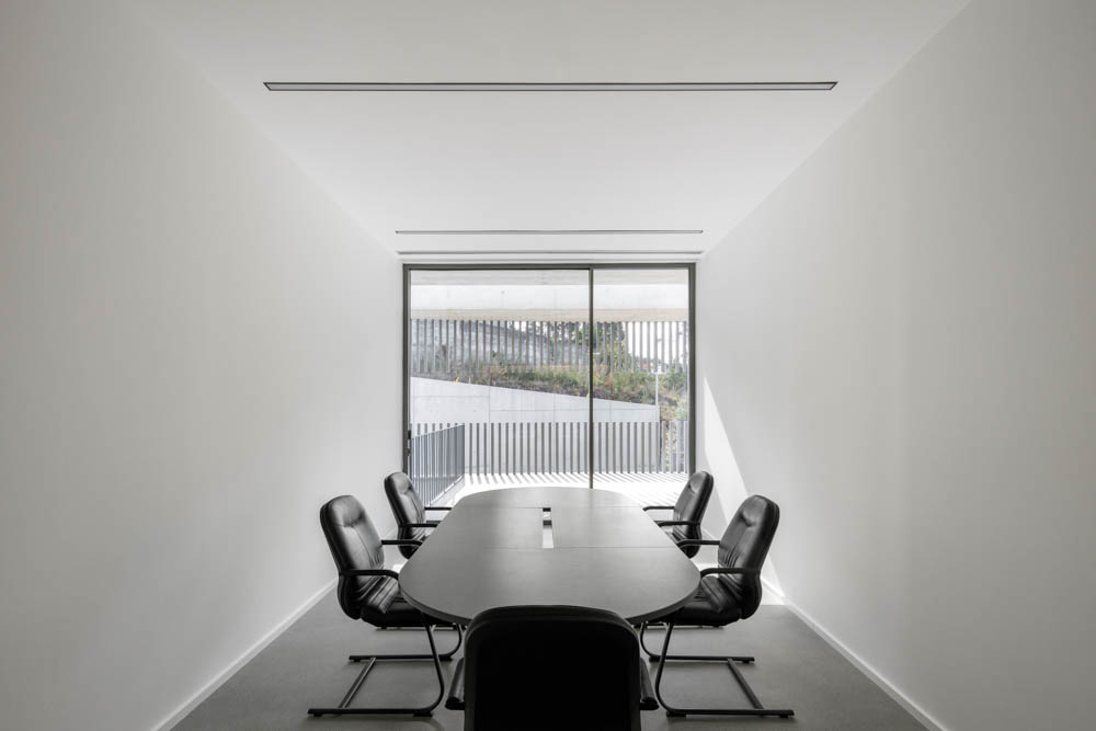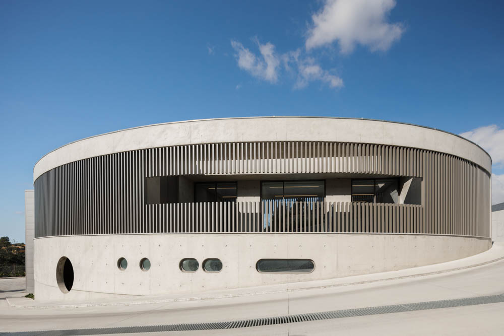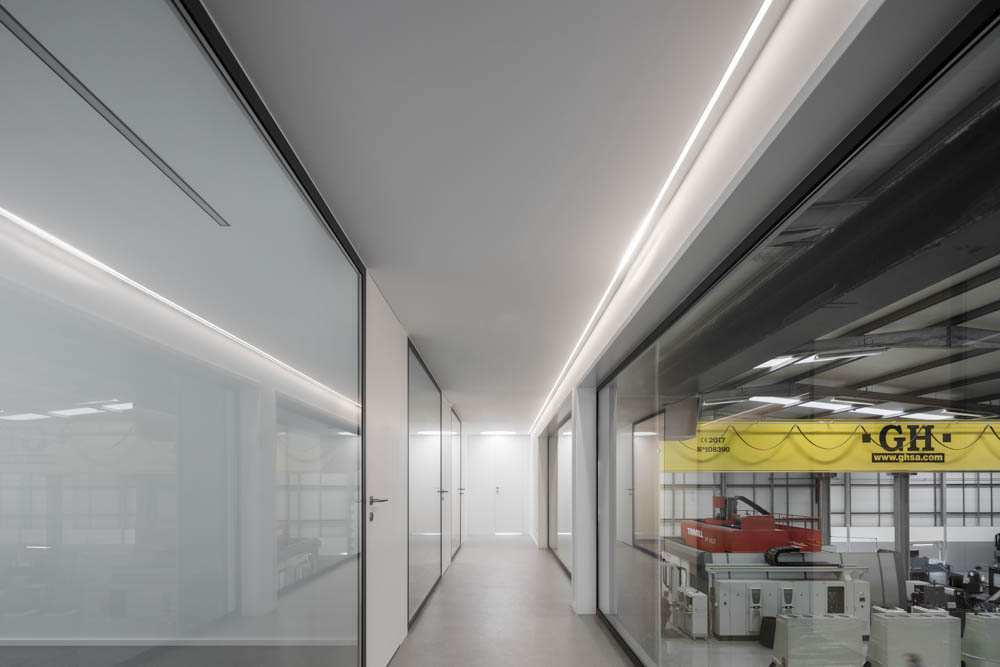 The site’s configuration contributed to the adopted solution, which sought to maximize the area of the industrial nave, leaving the southern part of the site for the administrative area. This area lies along the new proposed street, giving rise to a curved concrete building, marked by vertical aluminum profiles, which sought to differentiate itself from the industrial volume, highlighting its function as an administrative area. The east corridor, which covers the industrial nave, connects the administrative area to the existing building. With a strong plastic component, relating to the mold industry, it sought, by means of its language, to convey a concept of contemporaneity while associating the company’s brand.