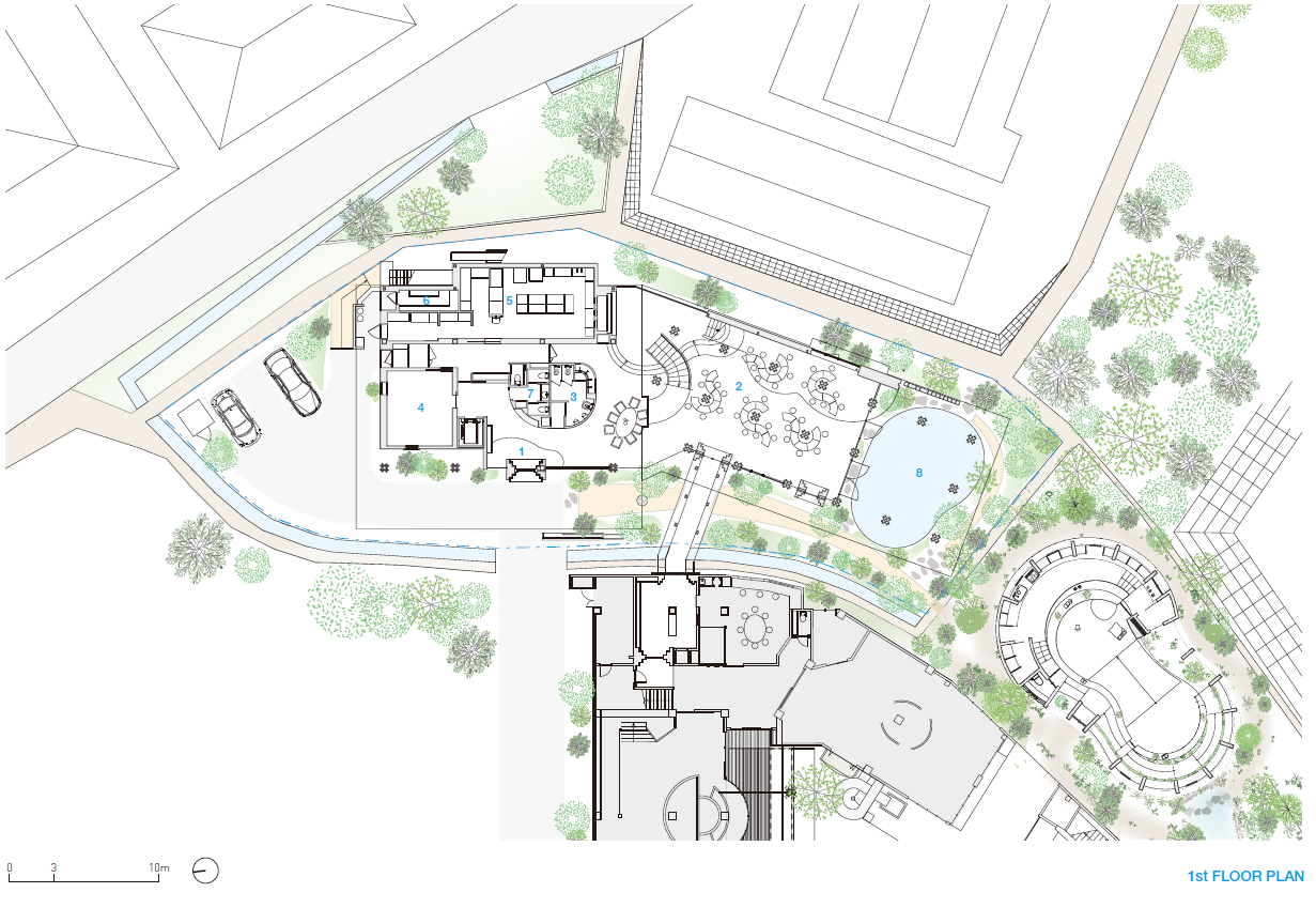 이 프로젝트는 부지에 남아 있는 건물들과 비슷하게 디자인하는 대신에,점진적으로 확장되는 마스터플랜에서 영감을 받았다. 수년간 조성된 마을과 같은 어린이집은 그 안에서 스토리가 짜임새 있게 이어졌으며, 동네, 주변과 더욱 역동적이고 상호 교류적인 관계를 만들어갈 예정이다.