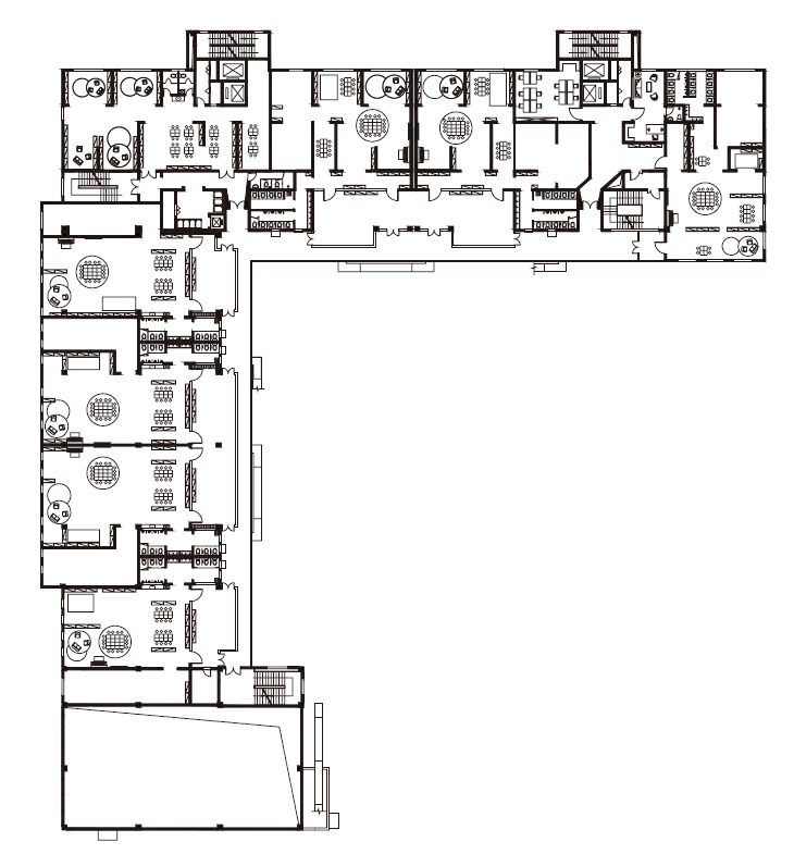 L자형 복도에 있는 장식과 기둥, 기존의 프레임은 제거됐고, 간결하고 개방되어 보이도록 기존 건물의 형태가 다듬어졌다. 다섯 세트의 슬라이드가 파사드에 기대어 각 층의 야외 공간이 연결되고 아이들의 활동 경로에 높낮이가 생긴다. 외부에서 내부로 도드라진 채도가 높은 색상의 벽을 일부에 적용하여 깊숙한 여백의 입체감을 지속적으로 확립하면서도 기능적 공간의 변형을 이끌어낸다. 궁극적으로 내부와 외부가 서로 이어지며 통합된 건물은 공간 사이의 경계가 흐려지고 야외 놀이터로 확장된다.