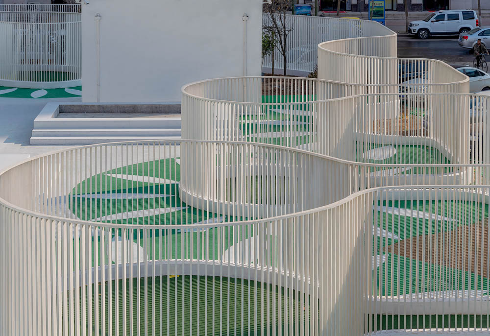The curved fence walls also influenced the developing of the interior activity spaces. In this way, layer by layer, from the outer city, the middle zone, the tortuous boundary, various types of internal venues, the outdoor platforms between the building and the playground, the outer porch, the front hall of each outdoor activity venue to the various indoor activities and functional spaces, a multi-dimensional experience is set for the children to perceive when crossing through the spaces and grow up in exchanges. Correspondingly, this child growth and development center is like a new form of park, organically embedded into the community, injecting new vitality into the community.