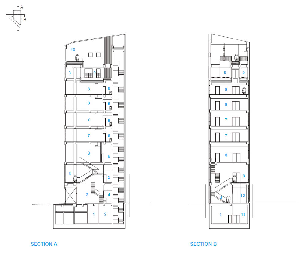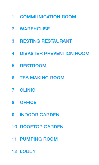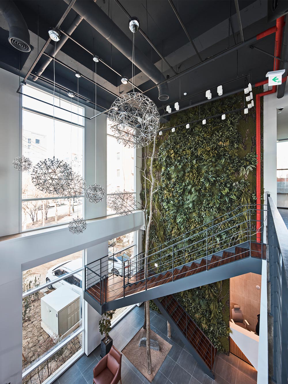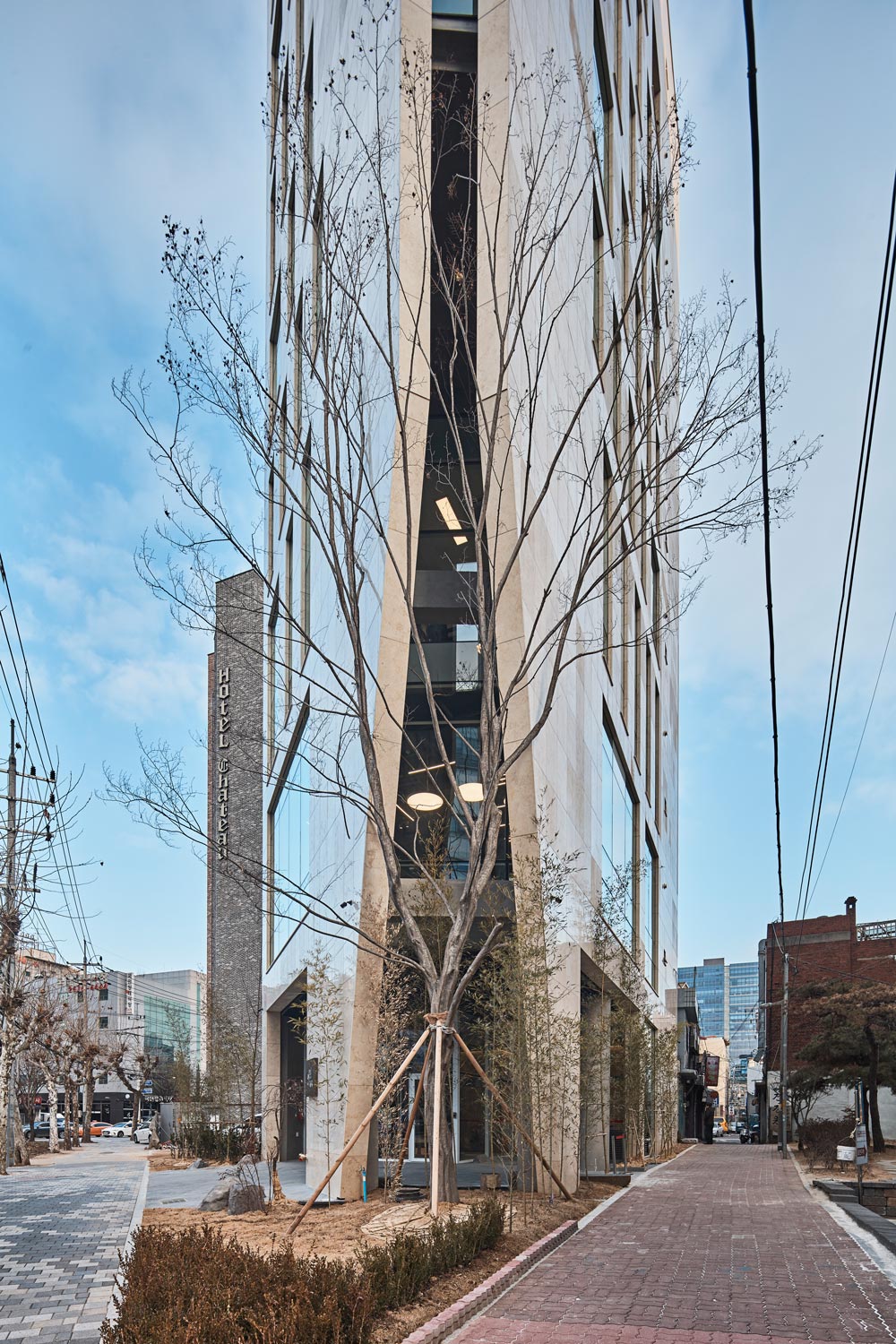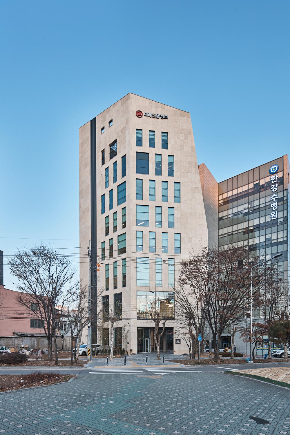 인근 병원과 호텔의 높이와 비슷한 규모를 갖는 방안으로 층고를 높이고 지상 면적을 어메니티 공간으로 최대한 분절하여 8층 규모에 옥탑층을 포함하여 40m까지 확장했다. 법적 기준, 대지 형상, 주변 건물은 계획의 길잡이처럼 폭 10m, 길이 13m~22m, 높이 40m의 요철이 강한 큐브와 세장비가 높은 형태에 이르게 해주었고 의도하지 않은 상태에서 드러나는 형태를 갖게 됐다.