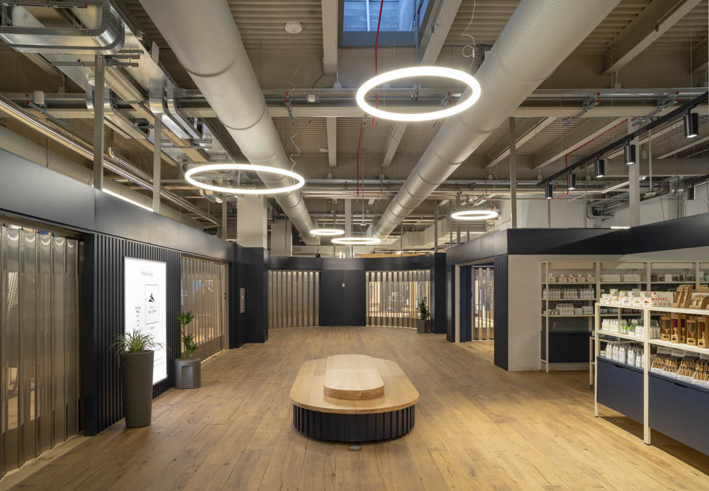 From the plant engineering point of view, Green Pea offers a broad panorama of the different ways of producing energy through renewable sources: geothermal wells, photovoltaic panels, solar panels, mini wind turbines, smart flowers, up to piezoelectric floors capturing kinetic energy generated by the passage of users. The plants are intentionally left visible to recall the industrial origins of the site. The combination of these active and passive environmental strategies, aimed at achieving maximum energy efficiency and reducing CO2 emissions, has made it possible to obtain a score of the Italian Itaca Protocol of 3.5 and create a NZEB (Nearly Zero Energy Building) in class A3.