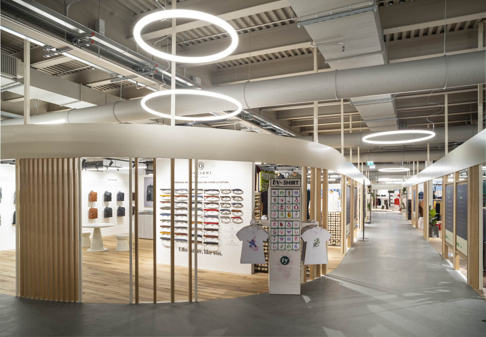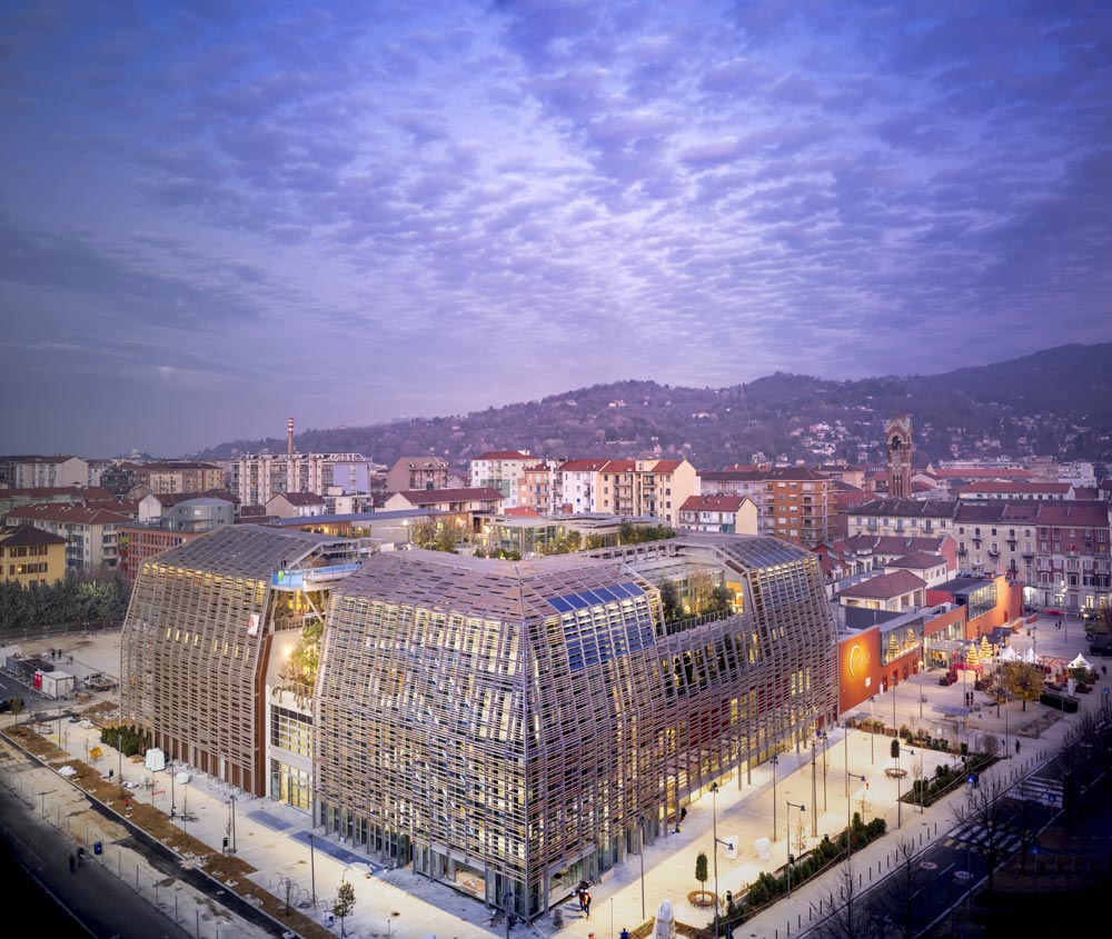 Green Pea fits into the context of the great transformation of the historic industrial area of Turin grown up around Fiat Lingotto. The regeneration started in the 1990s with the transformation of the factory into a multifunctional center signed by Renzo Piano, followed by the first Eataly headquarters in the former Carpano area in 2007, designed by the same architects of Green Pea. From the industrial development of the twentieth century to the tertiary sector, the area is now facing the challenge of the future, that of sustainable architecture. Green Pea is a retail park dedicated to conscious and sustainable consumption, a manifesto built with new technologies and natural materials to convey the idea of respect for the environment and nature. Designed as an organic shape permeated with light and greenery, the building is defined by a web of sunshades in spruce wood, coming from the forests cut down by the storm Vaia in 2018.