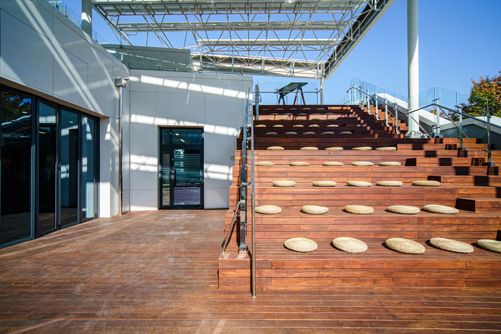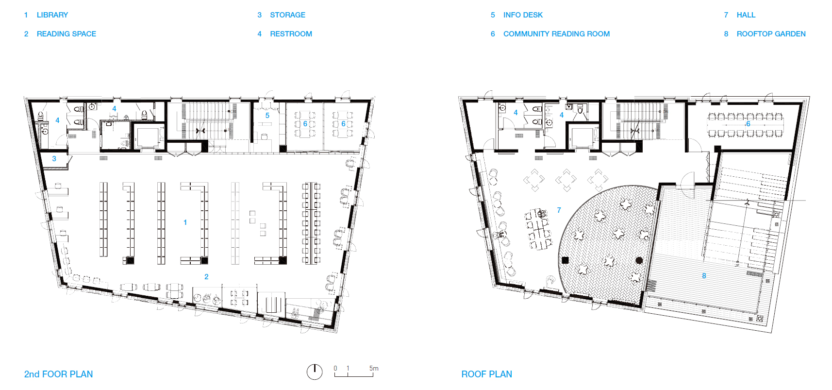 Dunchon Library has four characteristics. First, Dunchon Library embraces Iljasan mountain. Iljasan mountain can be seen when one ascends the staircase located on the third-floor exterior reading deck. Second, it is a space where one can read while freely moving between the indoor reading room and the outdoor reading deck. In particular, the terraced reading deck can hold author meetings, book concerts and club meetings. Third, it is a space where the rooftop garden and solar panels coexist. Both the creation of a resting space and production of electric power are possible, as the solar module was combined with the upper structure of the rooftop garden. It is a zero-energy library with the highest energy performance in Korea as it has obtained a 1+++ Building Energy Efficiency rating and a grade 4 Zero Energy Building certificate (54% independence).