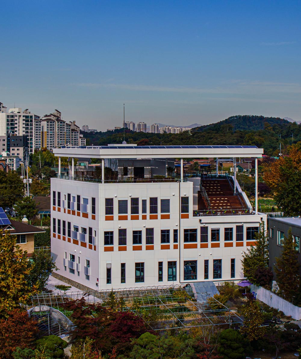 Residents will experience a pleasant environment through the energy-saving design technology and clean energy production technology hidden in a small library of a neighborhood. Dunchon Library is another example of the possibility that human beings and planet Earth can achieve sustainable development. Written by: Myungjoo Lee