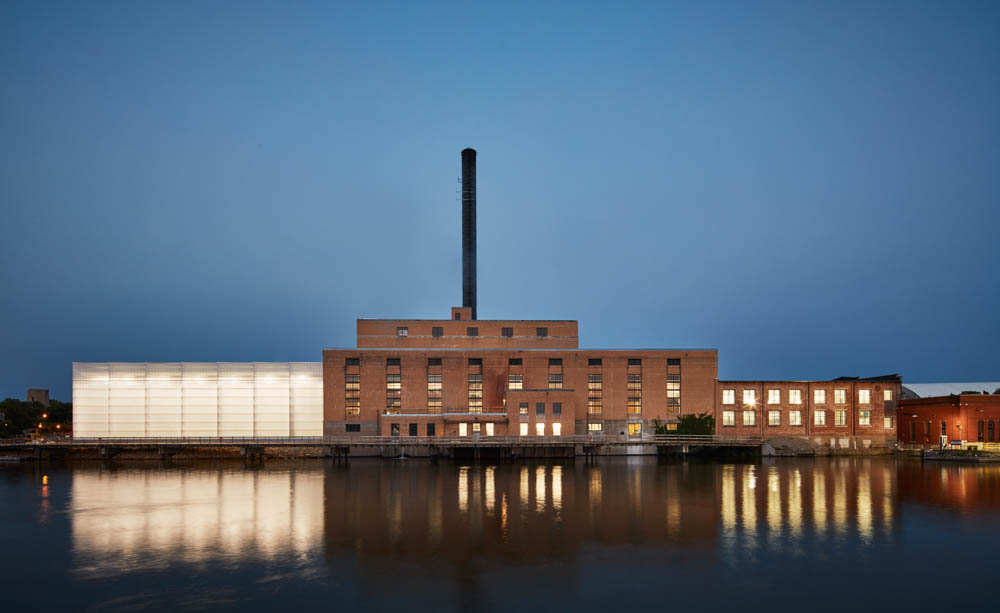 A new pedestrian bridge and publicly-accessible elevator connect the Beloit College campus, which sits on a hill, with the Powerhouse and the adjacent riverside paths and parks at ground level. Forming these new links between town, gown, and river, the former power plant is now generating a more energetic and vibrant community life.