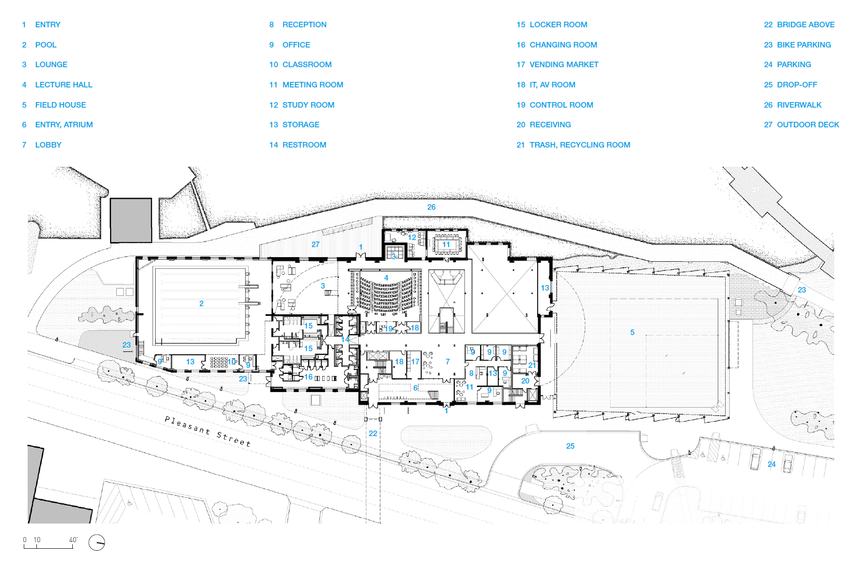 이 디자인은 기존의 건축적 형태의 특징과 산업 장비들을 그대로 보존하면서, 새로운 지속가능성과 더 큰 규모의 벨로잇 공동체의 삶을 장려하는 활기찬 모임 공간을 제공하는 것에 그 목적이 있다. 매달린 3라인 트랙은 건물의 모든 부분을 통과하며, 여기에는 피트니스 센터와 레크리에이션 체육관, 8레인 수영장, 실내 잔디 필드 하우스는 물론 대화, 협업 및 학습 공간이 있다. 추가 편의시설로는 커피숍, 학생 라운지, 동아리방, 콘퍼런스 센터와 164석 규모의 강당이 있다.