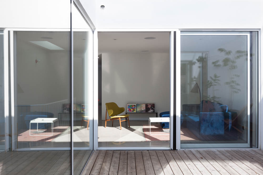 기존 구조에서 개조·증축되는 부분을 멀리 두기위해 집의 중앙에 비워진 공간이 만들어졌다. 이 공간은 오래된 것과 새로운 것 사이에서 물리적이고 시각적인 완충작용을 한다. 이는 거리로부터 독립적으로 집의 내향을 향해 집중할 수 있는 공간이기도 하다. 증축된 부분은 외부의 자극을 걸러주며, 철로와 파티오 사이에서 소음과 시각적인 자극을 줄여주는 역할을 한다.