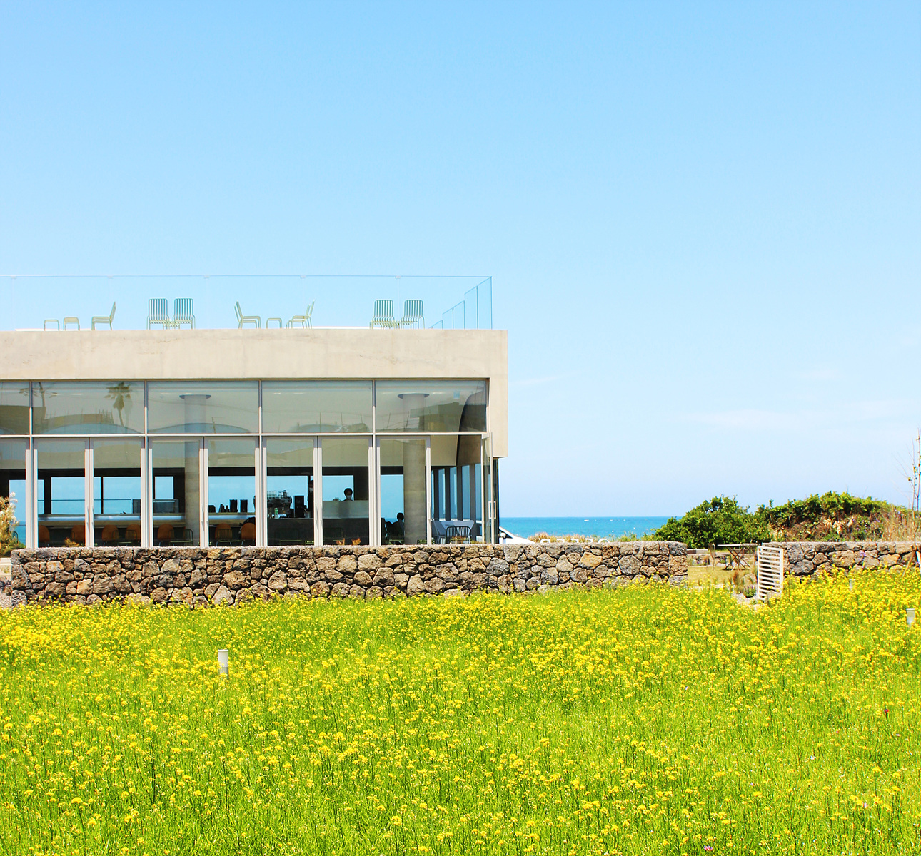 At the first site exploration, the schedule was planned to identify trends in surrounding buildings, but it was canceled. Because there are already good feelings in Jeju. The sway of the reed field wind, which is seen walking along the blue sea, the rough wind with a strange feeling, the yellowish rape field, the basalt black stone, and the gentle uphill, is a different emotional line from daily life on land. Rather than the building standing out, I hope it doesn't distract the good emotional lines that can be felt in Jeju Island as it was originally in this good natural environment, and I just set the direction of the big concept of 'just here...'