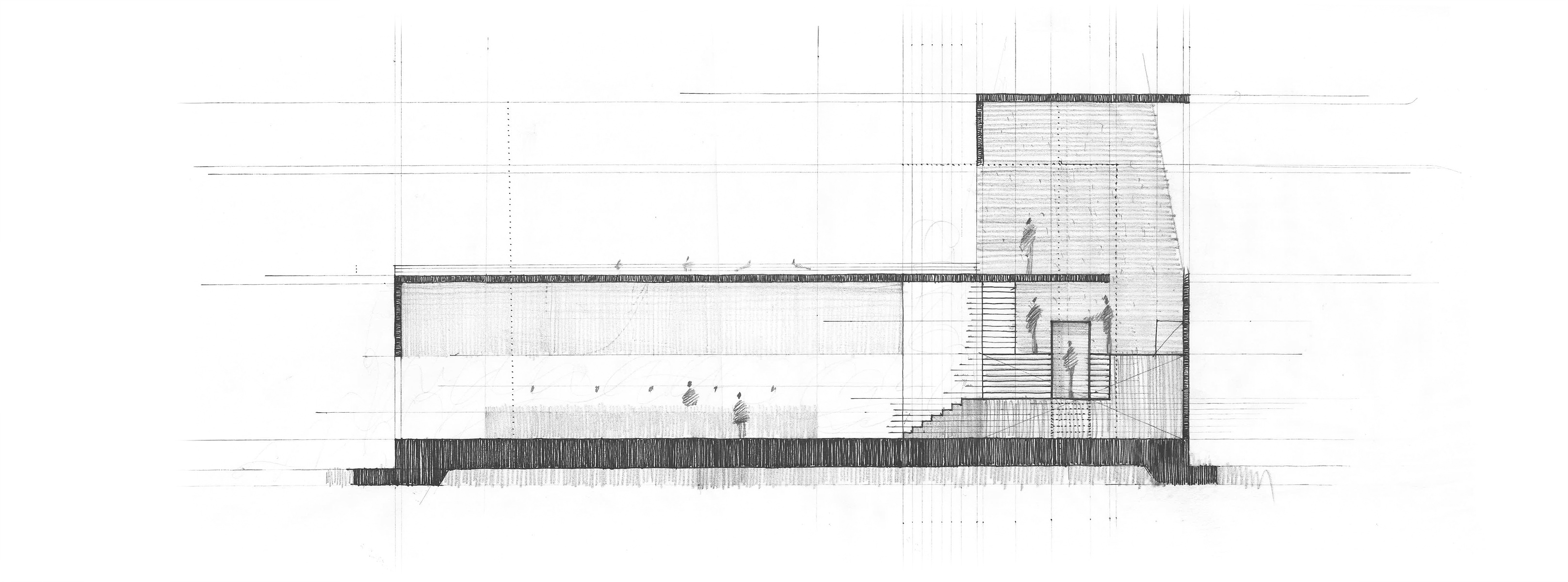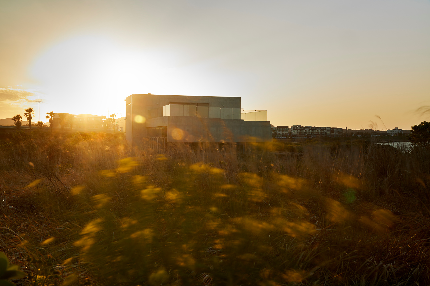자연 빛의 양으로 북쪽 바다를 느끼는 태도와 남쪽 들판을 느끼는 감정을 상상해보았다. 수공간에서 솟아오른 매스의 일층 바닥은 지면보다 높다. 일층 내부에서 바다를 느끼려면 약간의 경사진 슬로프를 올라야 한다. 올라서 밟은 1층 바닥에서는 북쪽 바다의 선명하고 푸른 수평선이 펼쳐진다. 지면보다 살짝 올라온 높이에서 본 바다는 앞 도로의 차와 자전거 또는 도보를 걷는 사람들의 광경과 방해되지 않게 좋은 모습으로 겹쳐진다.