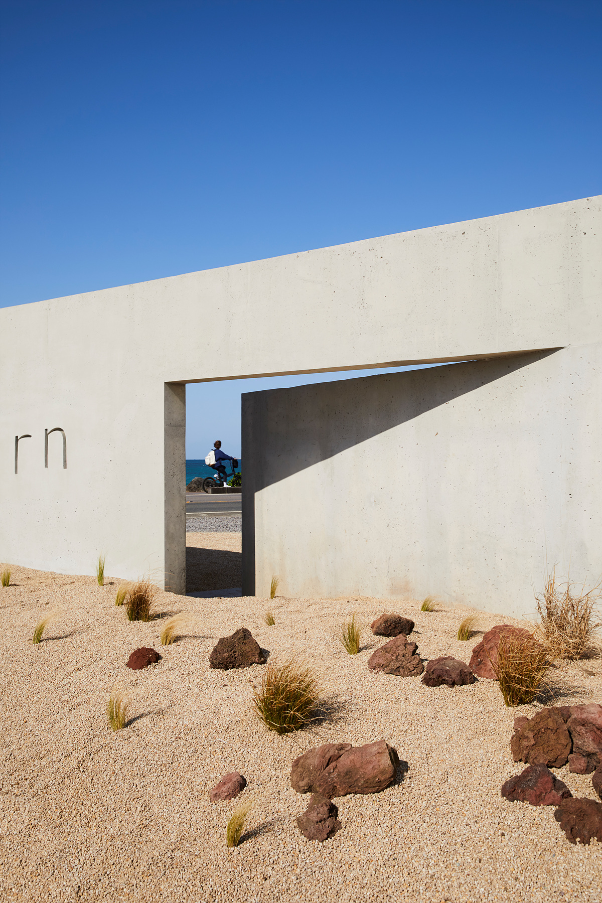 I imagined the attitude of feeling the northern sea with the amount of natural light and the feeling of feeling the southern field. The first floor of a mass rising from the water space is higher than the ground level. You have to climb a little slope to feel the sea inside the first floor. On the floor of the first floor, the clear blue horizon of the northern sea unfolds. Seen from a height slightly higher than the ground, the sea overlaps with the sight of cars on the road ahead, bicycles, or pedestrians, in a good way.