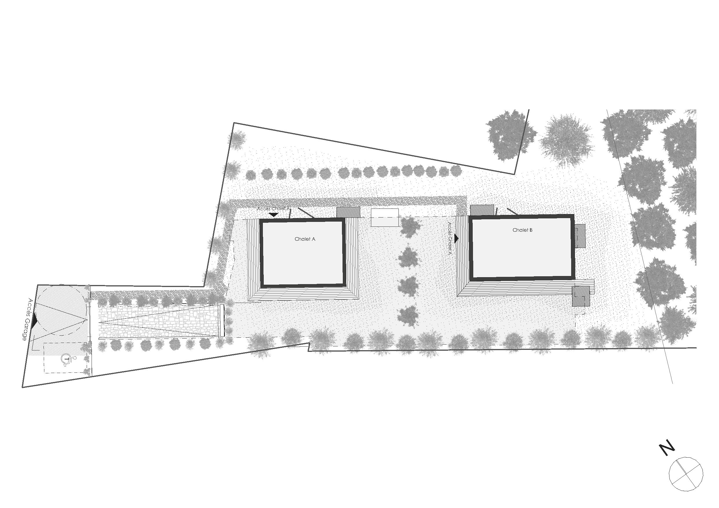 프로젝트는 건축가가 건축주에게 제안한 이 특별한 땅을 발견하면서 시작되었다. 건축주는 세 개의 샬레 건설을 계획하고 있는데, 이는 지방 자치 단체와 체결한 계약에 따라 두 개의 건설로 축소될 것이다.
