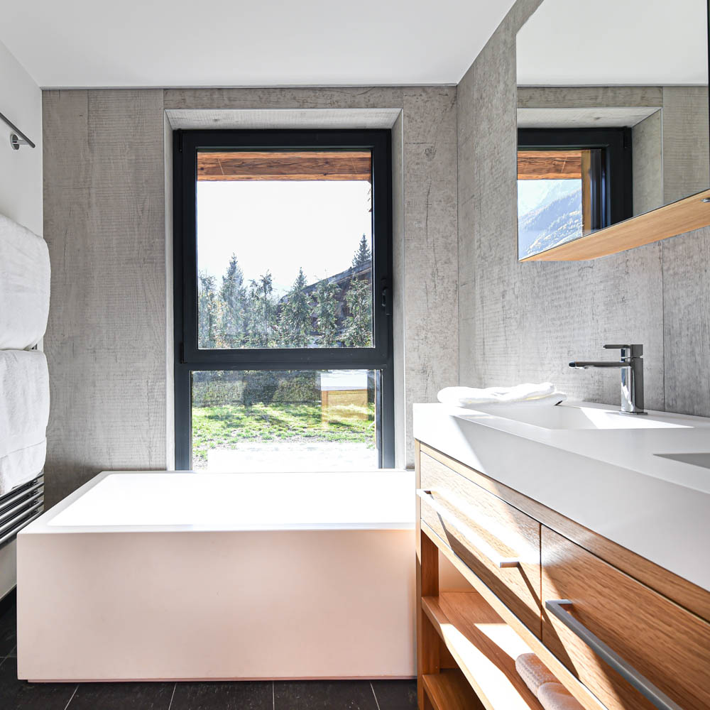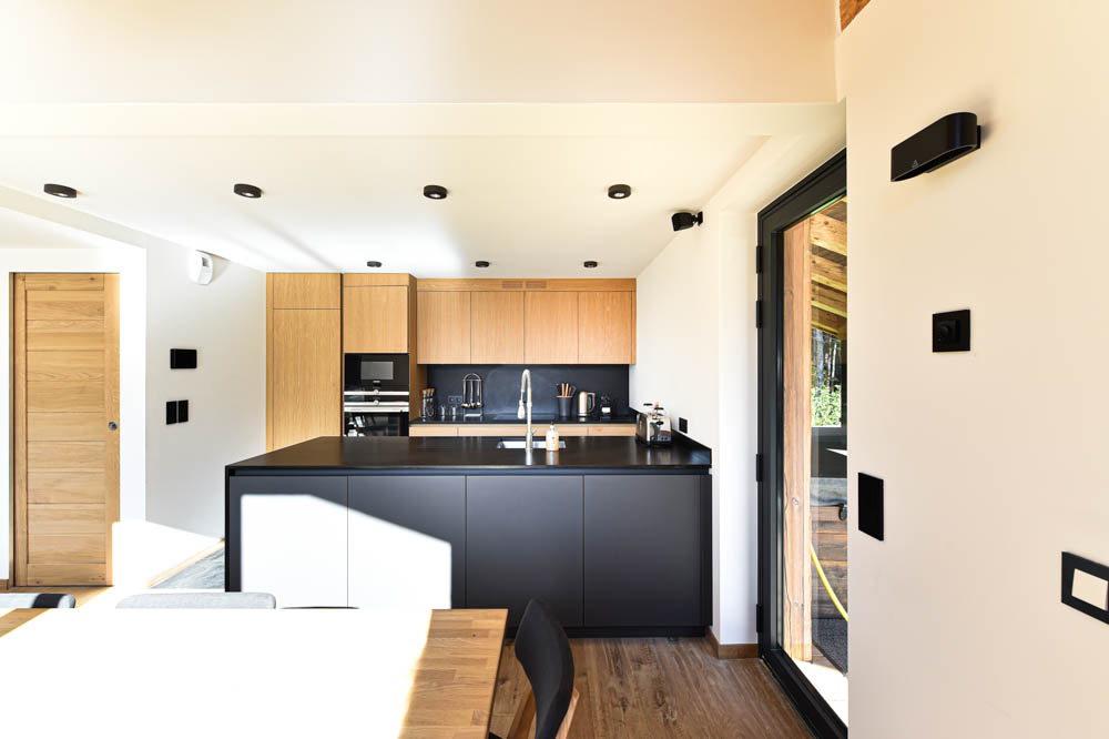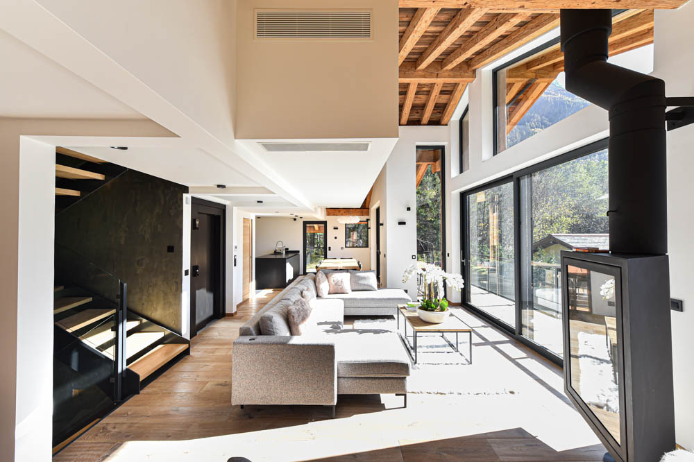 The client, who has already carried out other projects with the agency, wanted a contemporary, unprecedented, and striking proposal. He asked for a strong and pure signature of the Agency’s architectural style. And thus, the kiosks on the roofs, these open volumes tore from the agreed space, are born and gives the master-bedroom a spectacular view on the chain of Mt Blanc, a luminous escape.