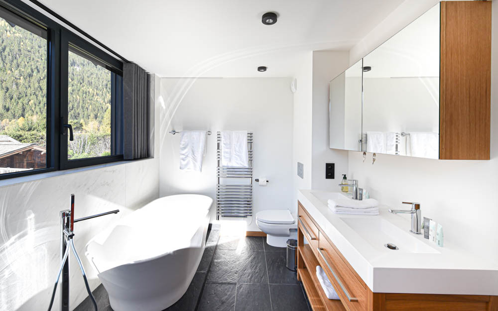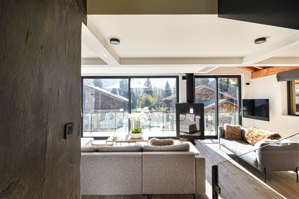The client, who has already carried out other projects with the agency, wanted a contemporary, unprecedented, and striking proposal. He asked for a strong and pure signature of the Agency’s architectural style. And thus, the kiosks on the roofs, these open volumes tore from the agreed space, are born and gives the master-bedroom a spectacular view on the chain of Mt Blanc, a luminous escape.
