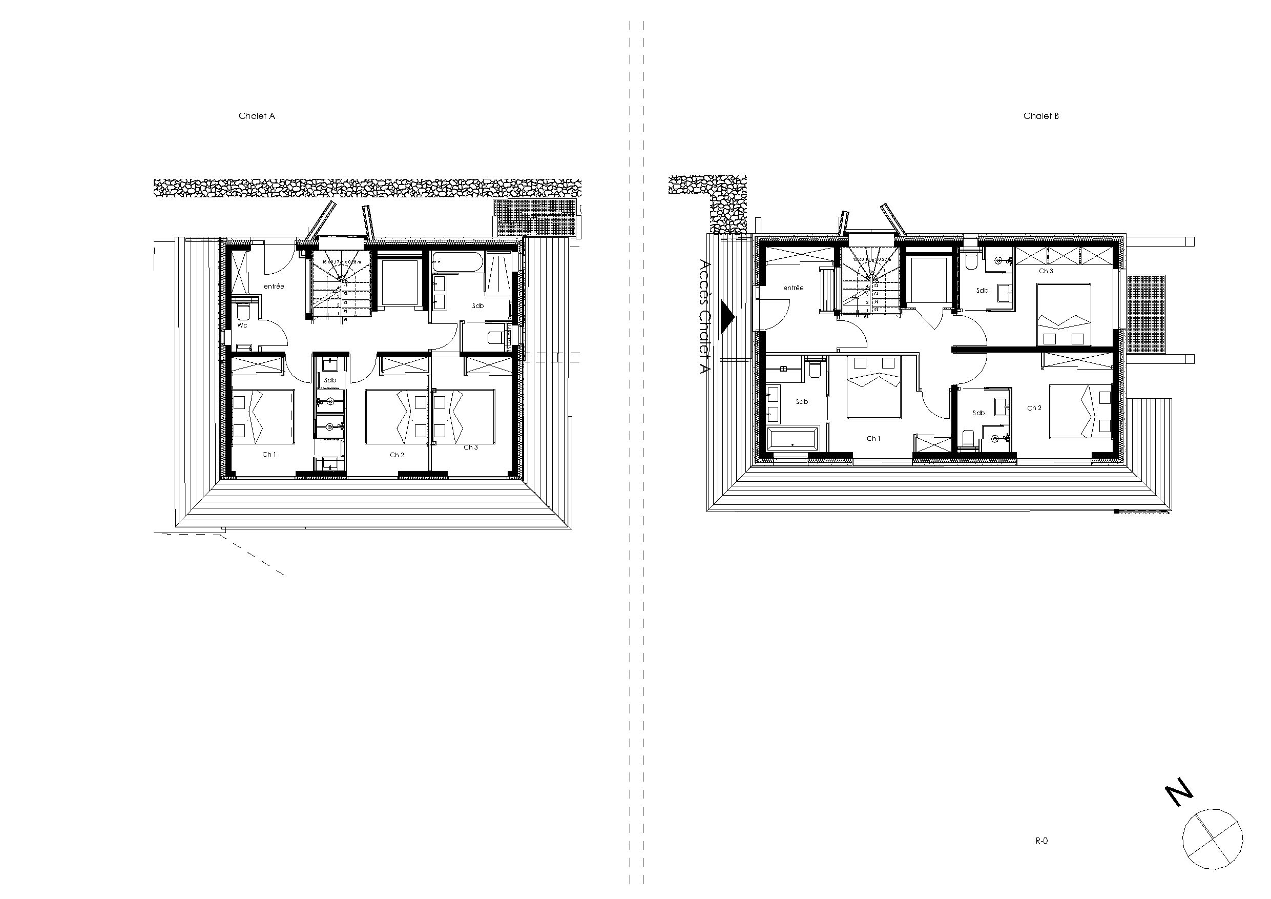 The project began with the discovery of this exceptional land by the architect who proposed it to the client. The latter, seduced, envisages the construction of three chalets, which will be reduced to two constructions to conform to the agreements made with the municipality.