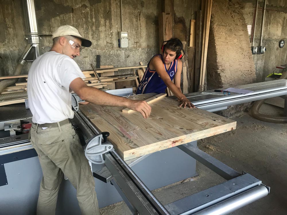 To supply the raw materials of the project, 40 pine trees were harvested and cut into 3cm boards and stacked to dry for three months. After they reached the proper humidity level, each board was taken into the Valldaura Labs carpentry to be processed into hundreds of pine lamellas. Each lamella was then encoded into a specific sequence, tagged, and pressed into more than 30 structural CLT panels which were assembled into a 3.6x3.6m cube.