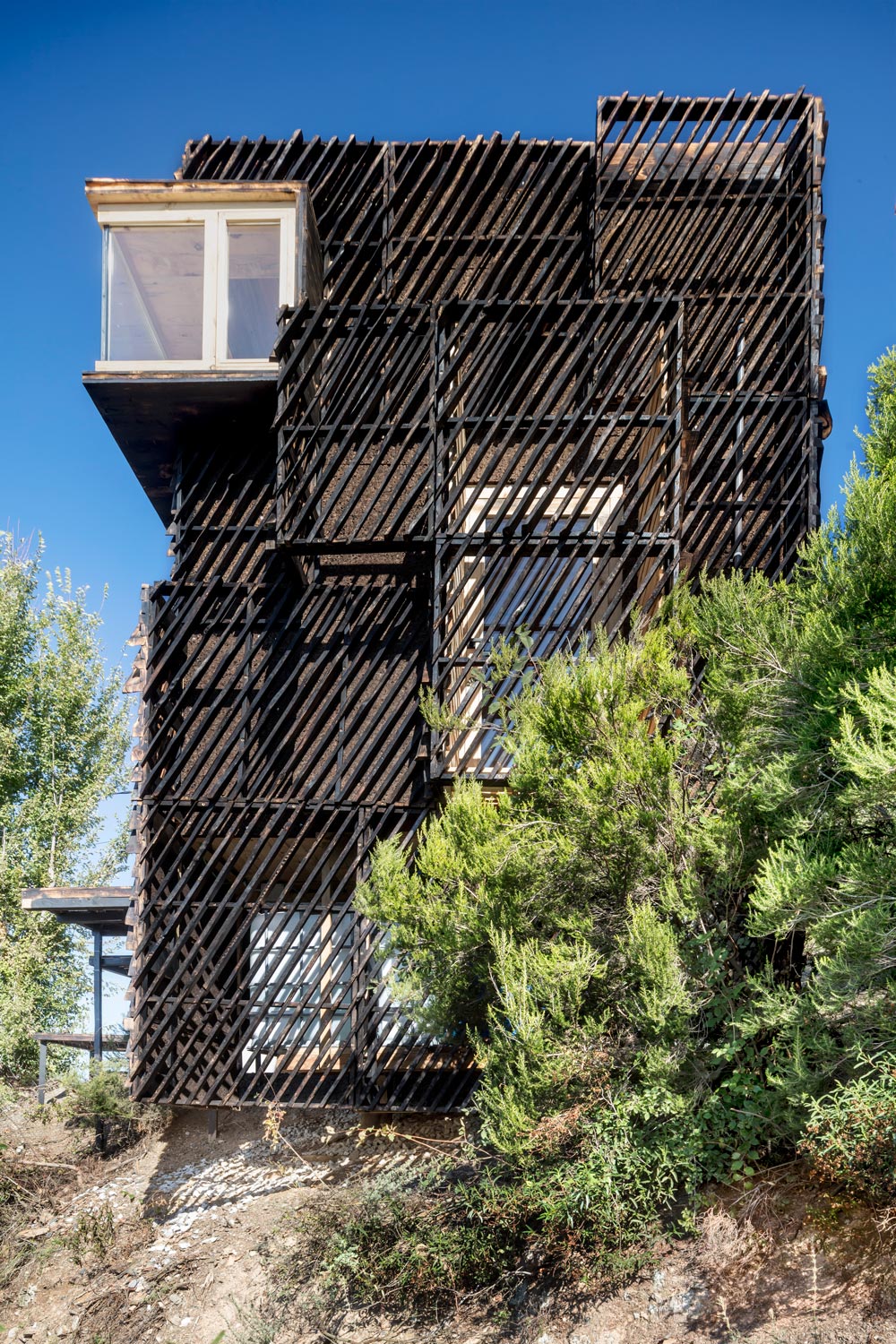 The Collserola natural park, in the surroundings of Barcelona, is the setting for The Voxel project, produced by a team made up of students, professionals and experts from the Master in Advanced Ecological Buildings and Biocities (MAEBB) of the Institute of Advanced Architecture of Catalonia (IAAC) Valldaura Labs. Designed as a quarantine cabin, the house can accommodate one occupant for 14 days, providing all material needs during self-confinement.