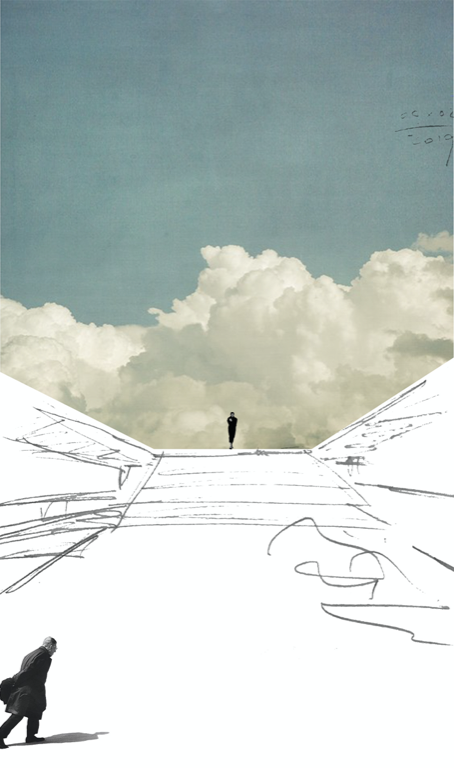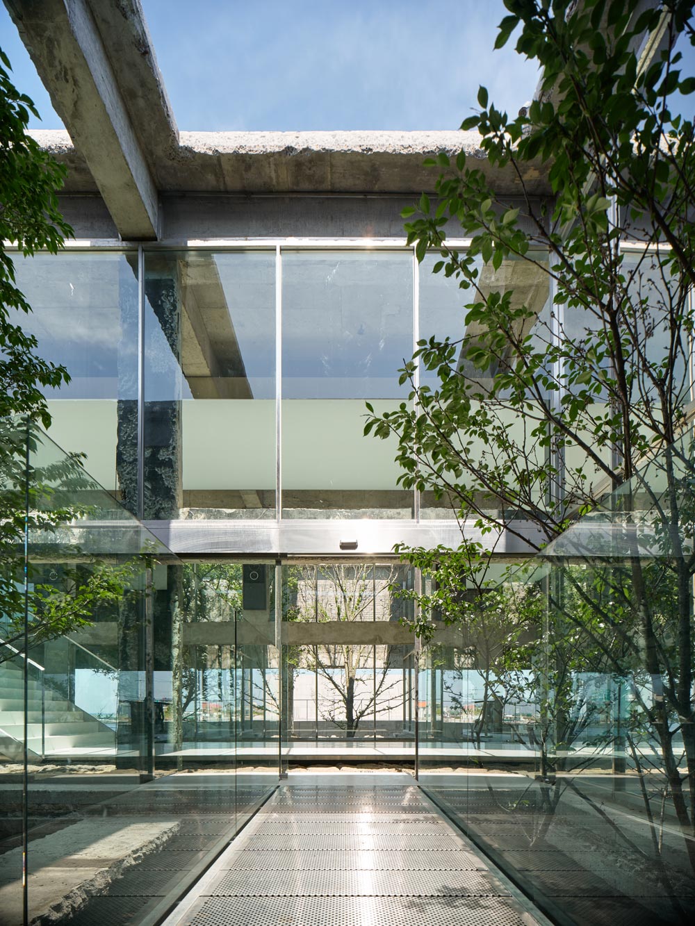 The theme set by the architect is about the process of finding oneself in ruins, intended to be described through a planned sequence across two buildings. The sea horizon on an infinite scale, the sky on an unreachable ideal, the overwhelming sense of space, the material properties of old materials that reveal the finiteness of time, the metal that glows with a momentary sharpness, and the forest that makes you lose direction. The environment and architectural space of the earth have been replaced with these various symbols, and reflective glass ambushed throughout the sequence becomes a mirror that reflects visitors themselves with the background.