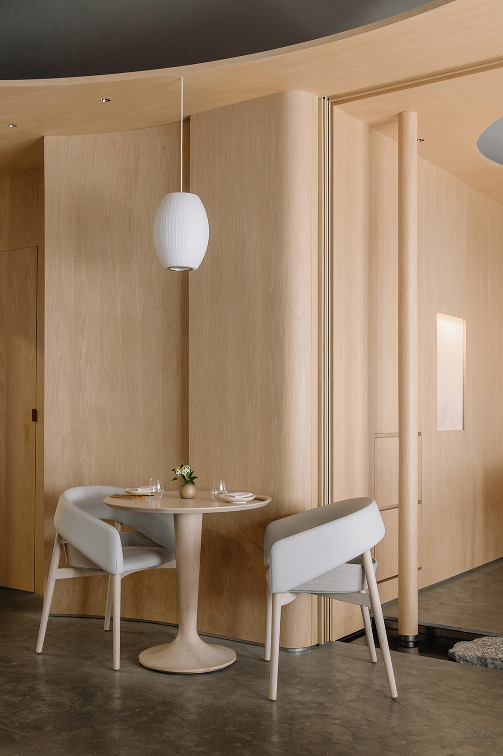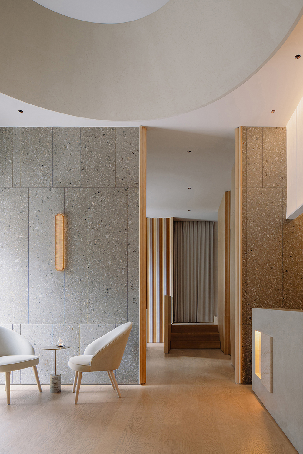 전체 공간에서 가장 중요한 재료는 무광택의 표면이다. 과도한 반사 없이 질감과 촉감을 통해 차분함과 아름다움을 전한다.
