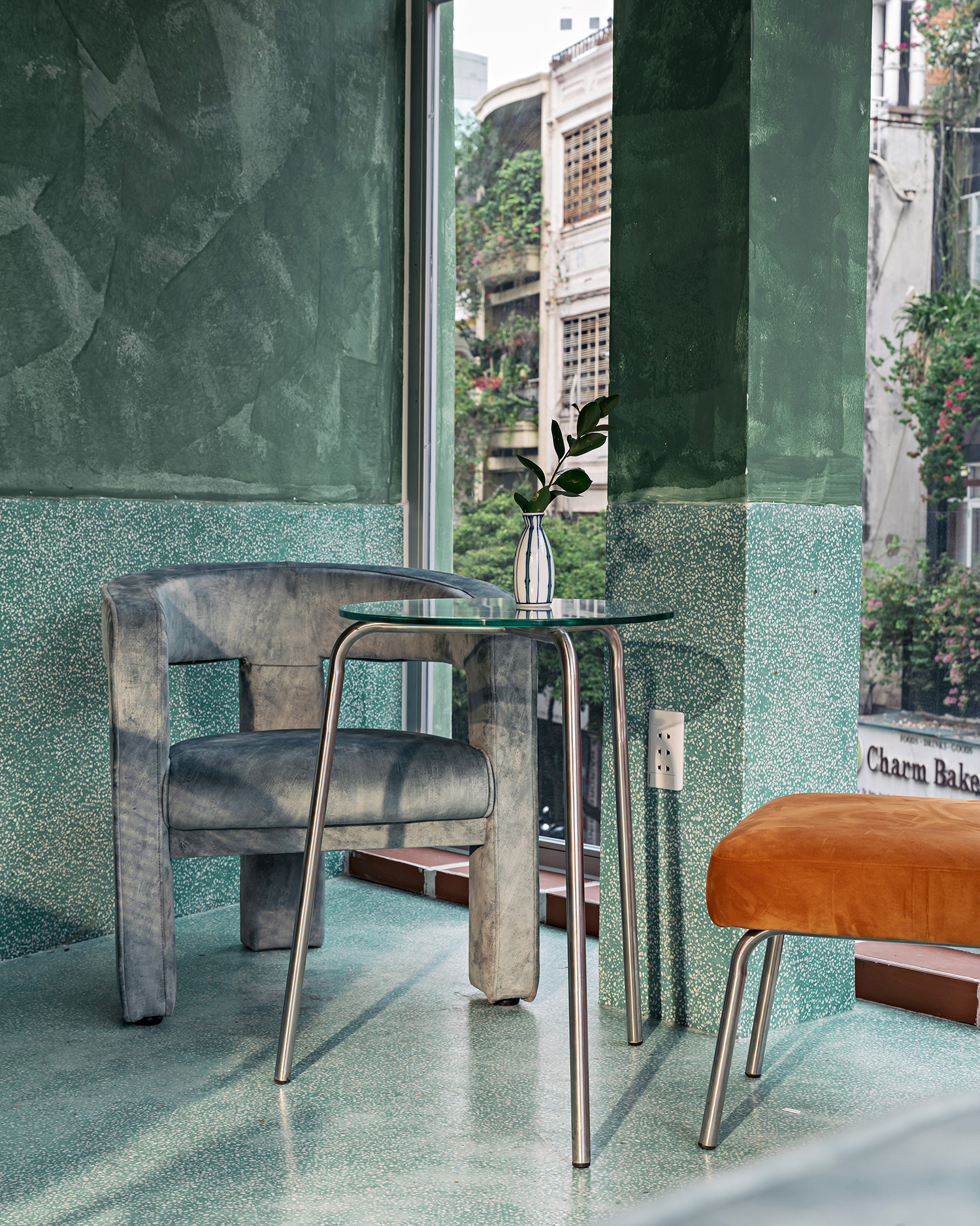 매장 공간에는 가공된 석재와 계단참의 타일들이 우아하게 배열되어 있으며, 이는 오래된 사이공 가정에서 주로 사용되는 재료다. 또한, KSOUL Studio가 디자인 계획에 기여하고자 하는 작지만 특별한 장소 중 하나 인 바텐더 공간을 구축하기 위해 전통적인 벽돌을 사용했다.