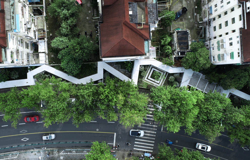먼저, 전체적인 디자인은 중국의 유명한 수저우의 수공간 정원을 참고하여 디자인됐다. 역동적이고 활력이 넘치는 정원의 구불구불 한 회랑은 그 자체로 아름다운 풍경을 만들어 낸다. 지역의 경계이기도 한 이 정원은 창우 지역을 구분 짓는 벽이면서, 일상의 새로운 활기를 부여하는 거리형 정원인 것이다.
