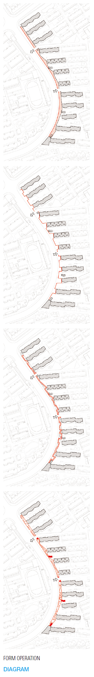 In the regeneration design, the zigzag walkway is established at first. According to the location of the residential buildings along the street, the trees near the wall, and the functional nodes on the street, the path of the corridor was formed correspondingly. The design is not only an extension to the internal environment of the community but also an expansion of the sidewalks by providing pocket gardens. In this way, each space not only has functional value but also interweaves the environment inside and outside the fence, which eliminates the sense of isolation brought by the fence, making this wall & garden a central place where both residents in the inner community and tourists in the outer street can get a sense of participation.