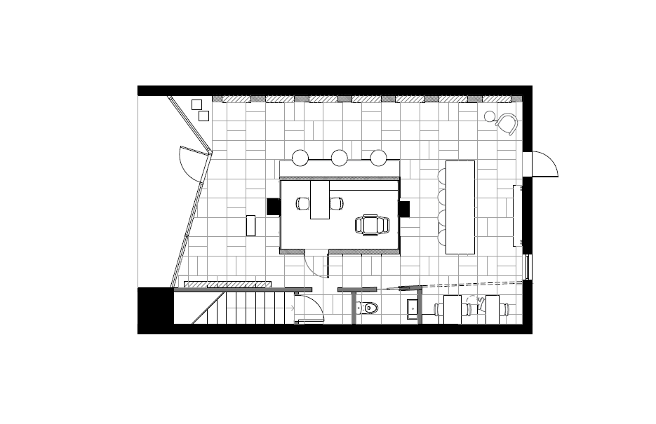공간을 극대화하기 위해 설계자들은 유연하고 개방적인 공간을 설계했다. 사전 검사실은 검사 전에 빠르게 사용되는 장치만 포함하므로 최소한으로 축소됐다. 설계자들은 그것을 불투명 커튼으로 여닫을 수 있는 방 안에 넣었다. 이 방은 손님이 앉을 수 있는 높은 테이블과 연결되어 있습니다. 다양한 모임과 토론, 안경테 조절이 가능한 주방 아일랜드를 연상시키는 테이블이다.
