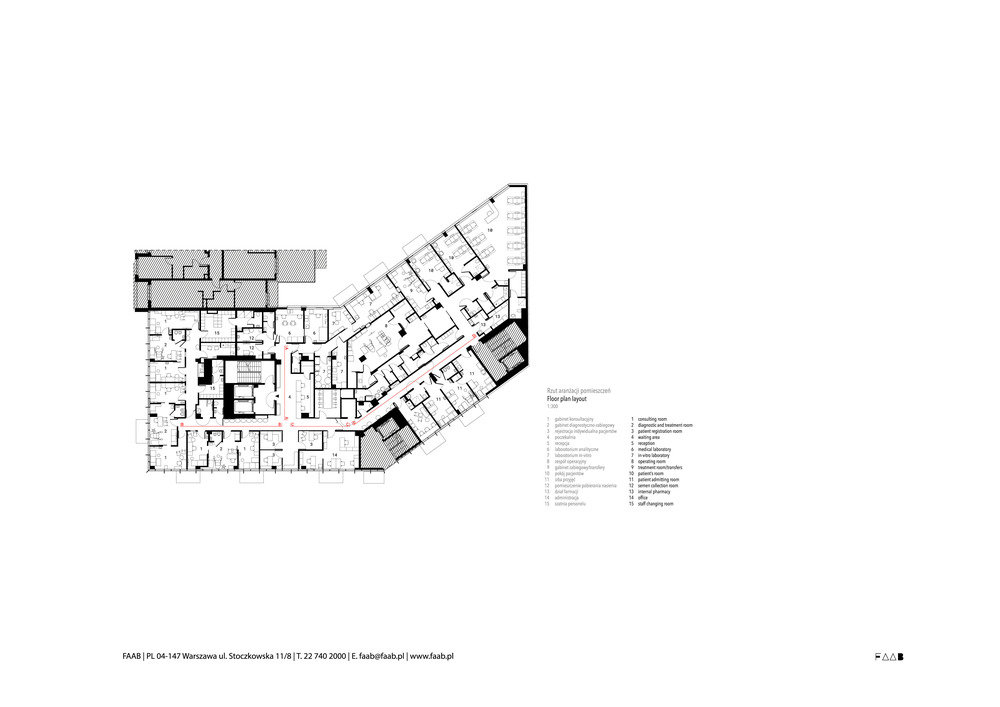 FAAB Architektura는 폴란드 브로츠와프의 Grabiszyńska Street에 원데이 병원과 IVF 실험실을 갖춘 전문 불임 클리닉을 완성했다. 기술적으로 복잡한 기능은 최신 의학 지식을 바탕으로 여성의 진단과 치료를 가능하게 한다. 태아가 발달하는 동안의 여성 신체 특징인 곡선의 기하학적 요소가 내부 콘셉트를 결정했다.