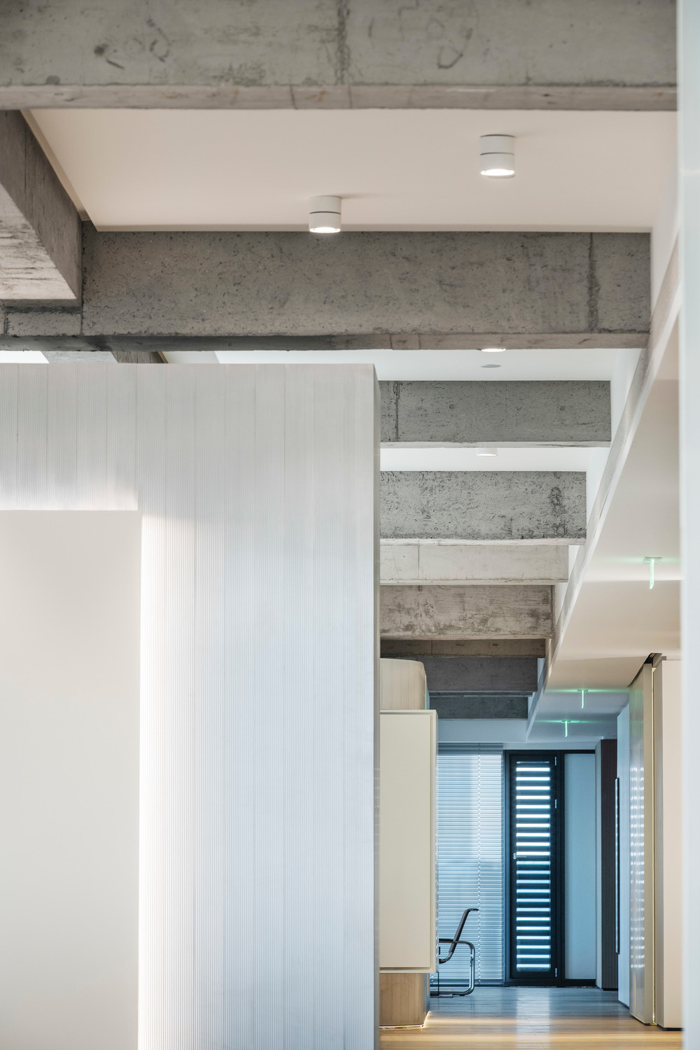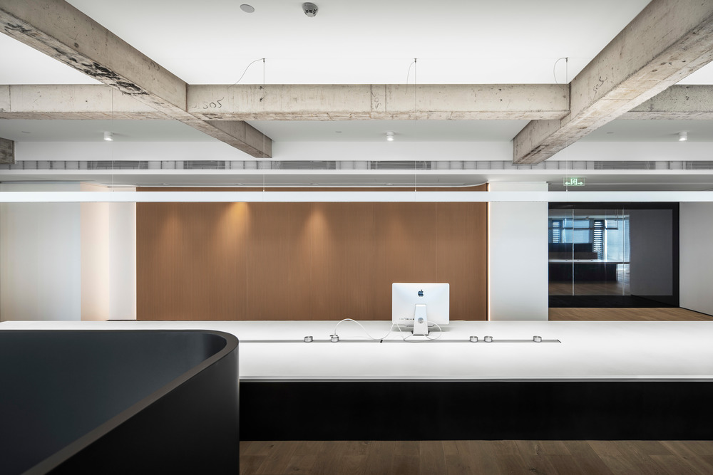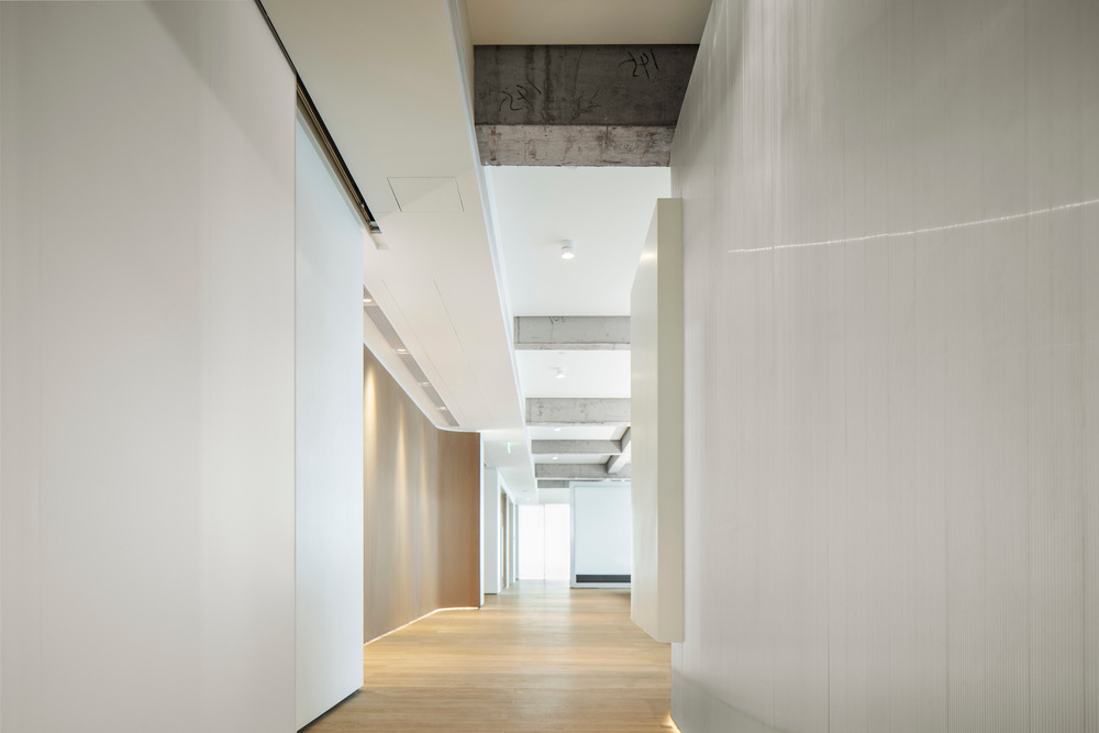 기존의 사무실 공간과 달리 입구는 로비와 접대가 없는 환경을 선택했다. 공간을 빼면 전체 사무실 공간을 더 완벽하게 만들 수 있다. 단순한 선 장식은 단단한 벽 대신 공간을 분리하는 기능이 있으며, 공간을 더욱 단순하게 만들어준다. 옷에 심플한 퀼팅 장식을 한 듯, 멀리서 보면 질서정연하고 가까이서 보면 정교한 디자인이다.