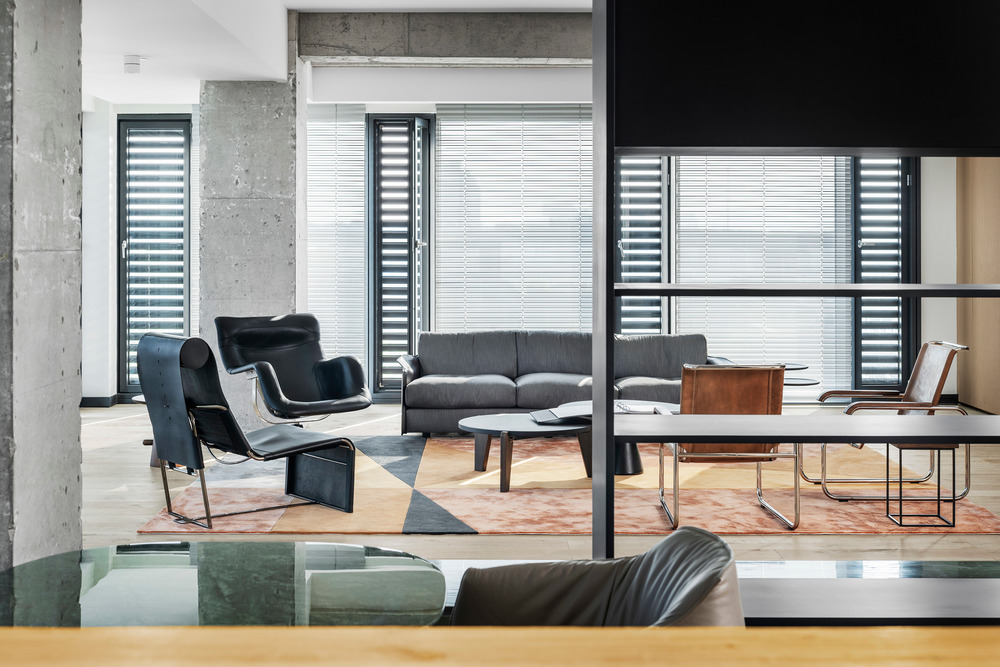 Entering the main space, the floor-to-floor window on one side allows the whole space to have an open view of the beautiful Qiantang River. Only simple colors are used in the space. The designer hopes to reproduce the texture and technology of the old industrial era.The use of new and old materials also makes space collide with a new visual atmosphere, just like the use of different materials in clothing, splicing out various collocations.