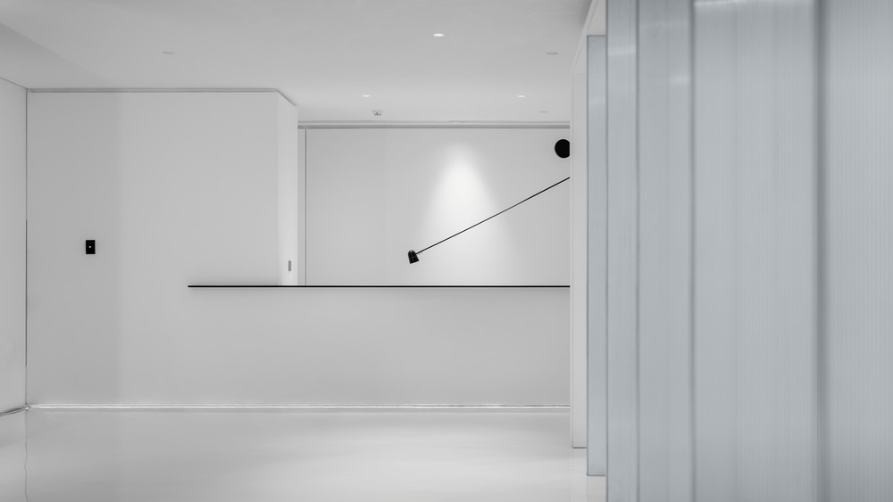 At the entrance, white is used for development, and only the simplest lines are used for decorating the wall. Every visitor can feel extreme purity when entering the space for the first time. The combination of white walls and projection makes the entrance space more modern and professional, and also offers the entrance space with different visual levels.