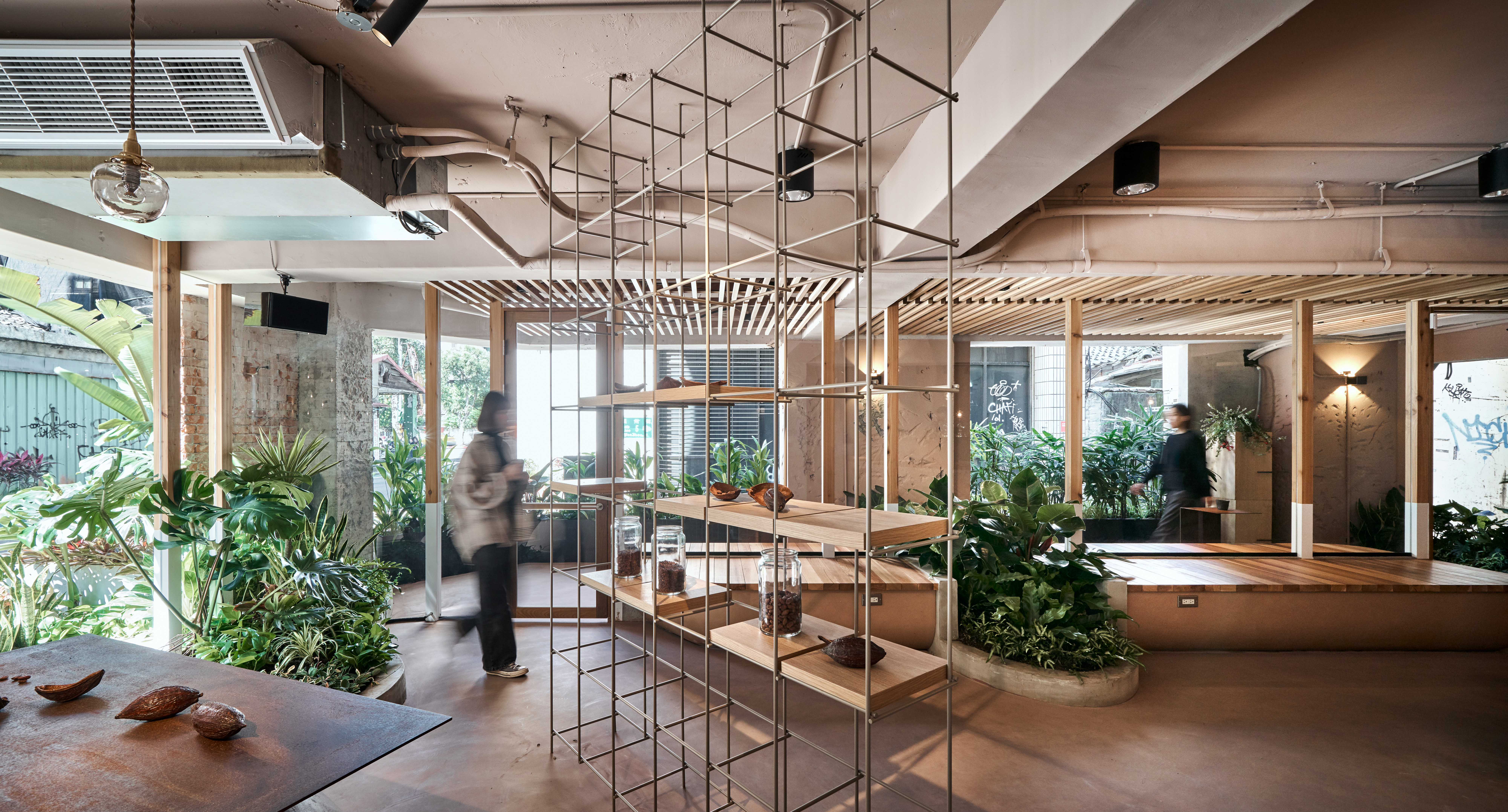 Extending the concept of the brand "Bean to bar", we used "from nature to space" to develop a variety of design techniques, from creating a friendly community space, an overall natural atmosphere, to a better base micro-climate, hoping to bring more possibilities to the space and the community.