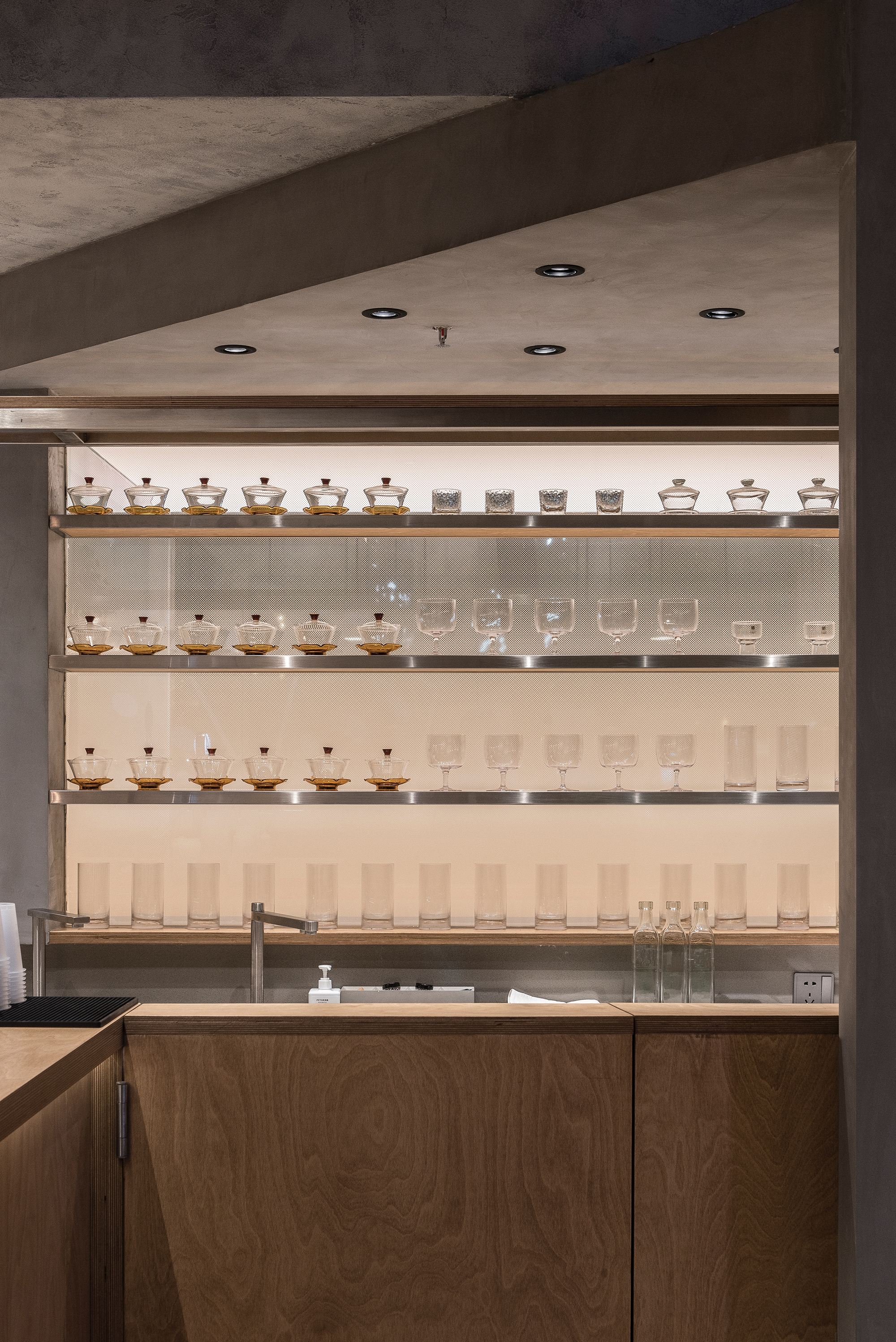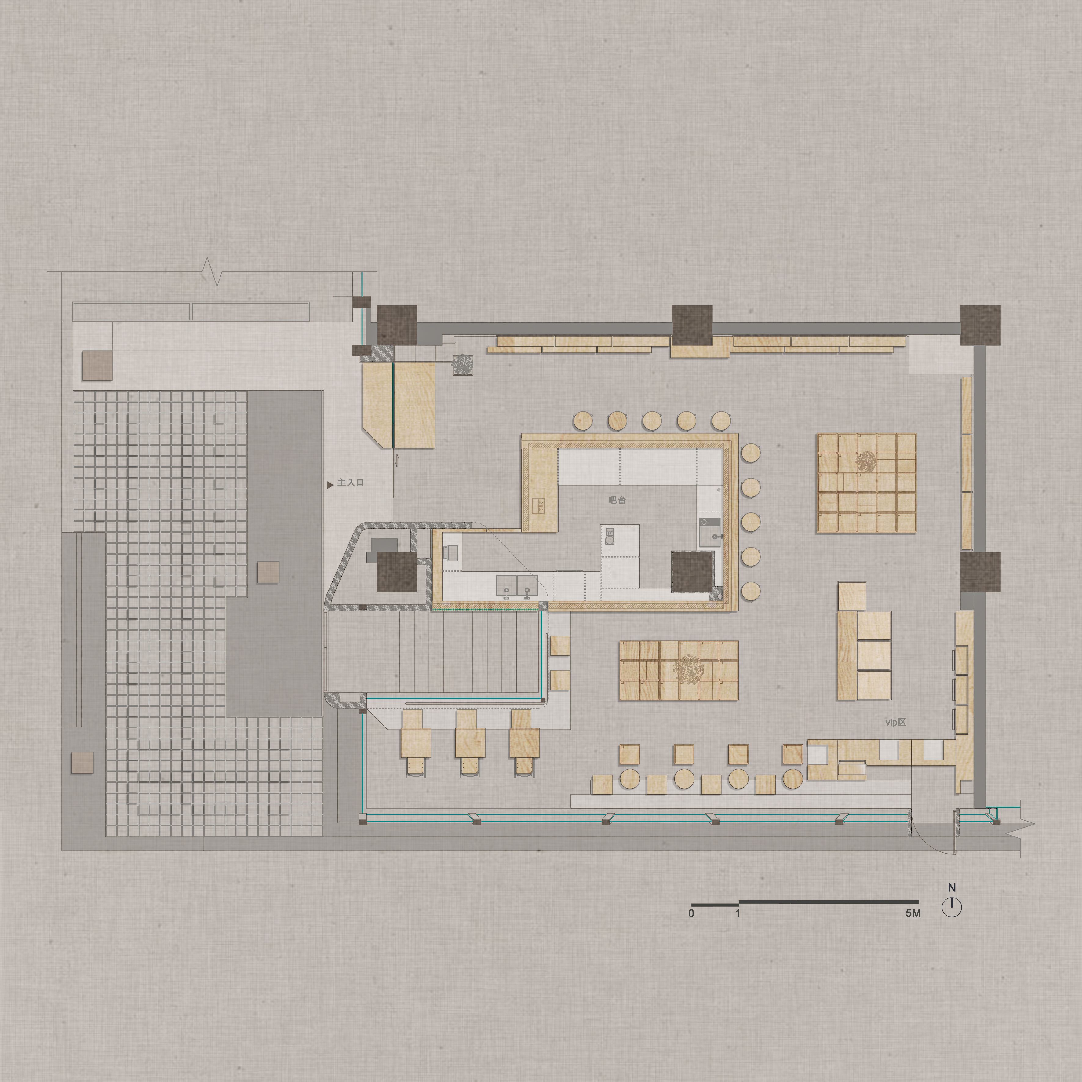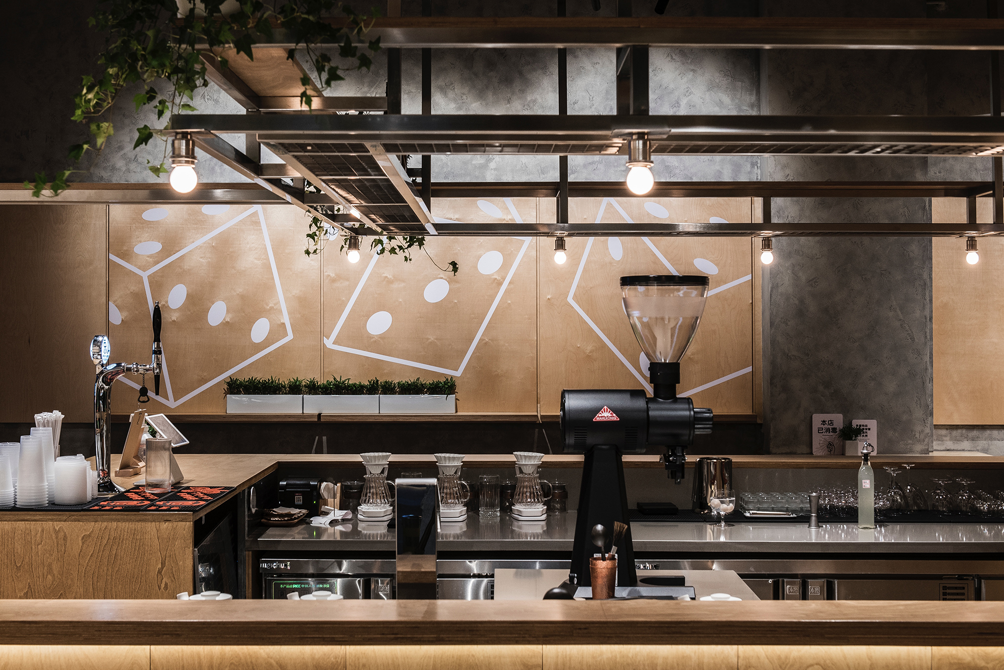 시각적 언어의 복잡성을 줄이기 위해 정사각형 구조가 일관성 있게 실내에서 사용된다. 예를 들어 벽의 디스플레이 파티션, 이동 가능한 사각 상자, 바 위의 와인 랙은 모두 공간에서 다른 비율로 결합된다. 인테리어 레이아웃의 핵심은 당연히 바 영역이다. 원형 구조에서 직원은 더 많은 고객을 돌볼 수 있다. 그것을 둘러싼 좌석은 다양한 시나리오에 맞게 다양한 형태로 설계됐다. 열린 공간에서 사람들은 더 많은 자유를 즐길 수 있다.