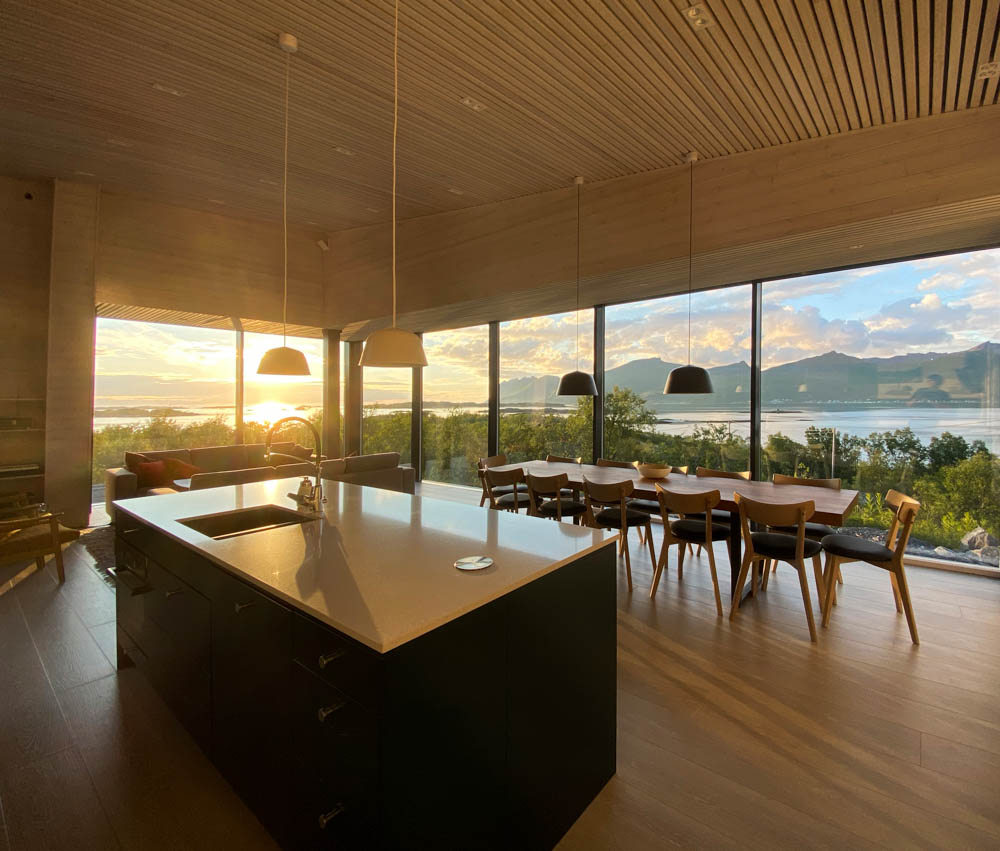 The cabin designed by Bjørnådal Arkitektstudio is located near a small fishing village called Hamn. The client wanted a family cottage with panoramic views of Senja's stunning mountains and nature. In such a beautiful and delicate landscape, it is important to build with nature and create a project that feels like a part of the landscape.