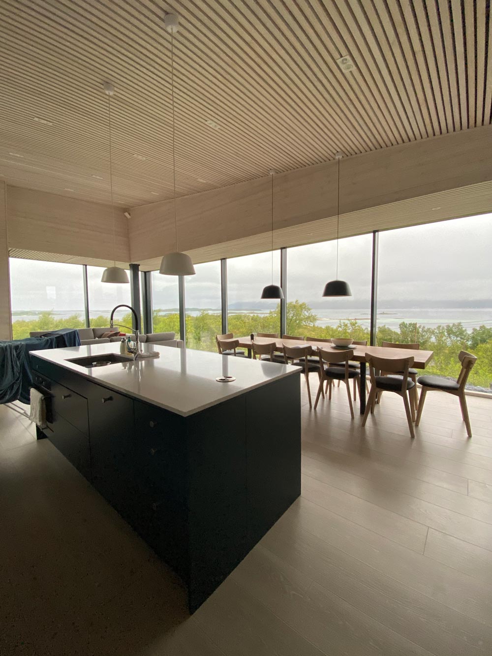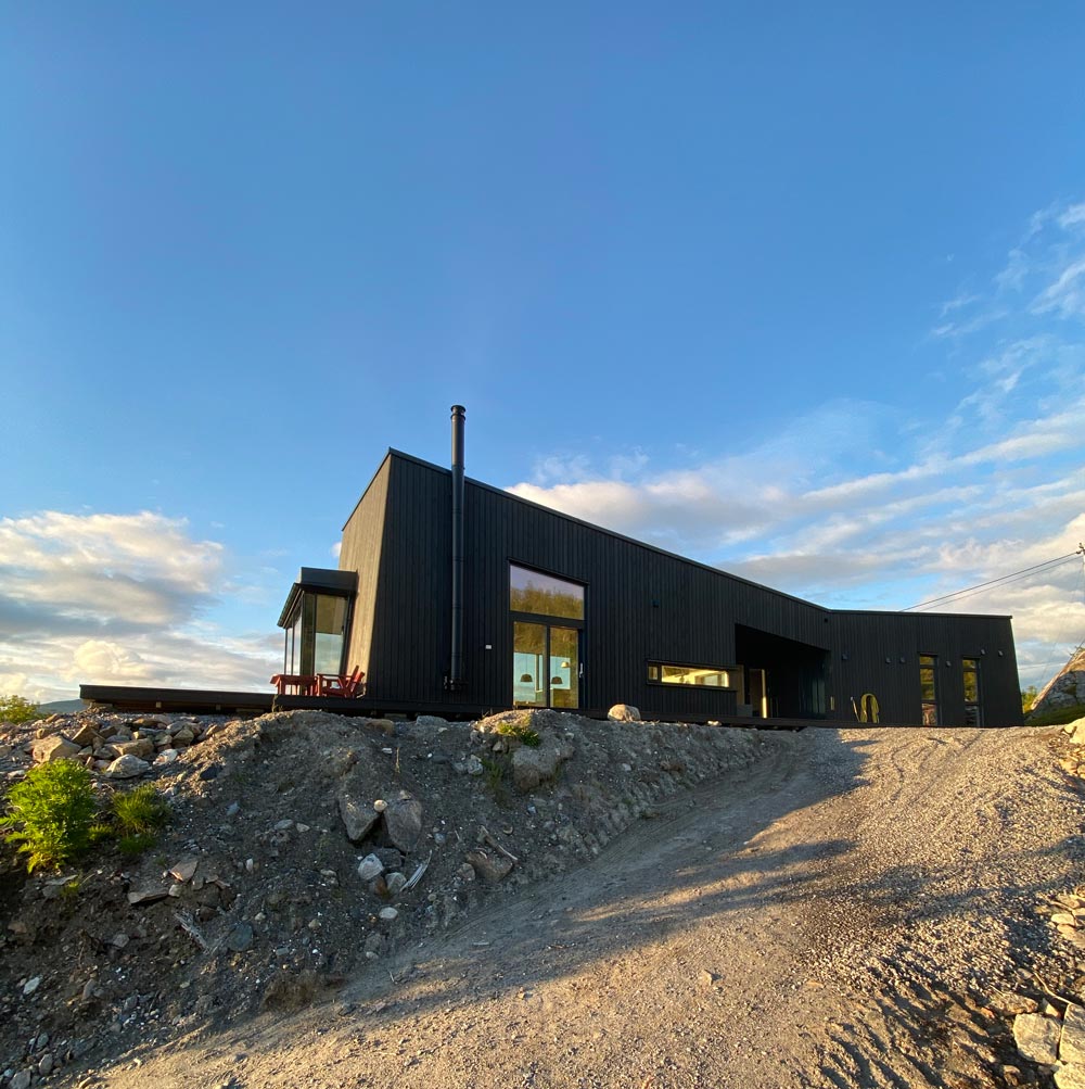 By studying old Sami building traditions, the architects found the ancient tradition of “Heller” where Sami would find shelter and build a cottage under large rocks. By shaping the building envelope like a stone with natural lines similar to the mountains, one could make a large panorama window in this shape. The project then becomes a "rock with a view" that settles naturally in the terrain - hidden by the forest from neighbors and the main road. Still, on the inside of the cabin, you feel like being part of nature.