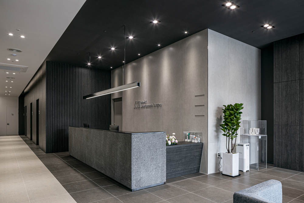 The road in front has a lot of traffic, but there is not a lot of general pedestrian traffic. Since it is close to a recreation area, it is not a common area for a medical facility to be built. However, the client who runs a clinic did not hesitate about the location. This was not only because of its specialty as a laparoscopic surgery hospital, but also because it is a well-known location and that it would provide a pleasant environment and excellent view to patients visiting this facility. Therefore, it was necessary to create an architectural space that blends in with the landscape and the excellent natural environment that surround it.
